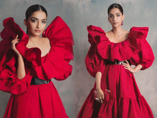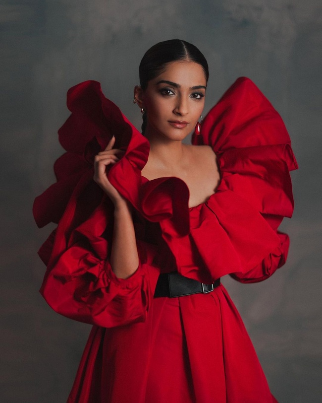 10 / 21Sonam Kapoor Beautiful Pics in Red Frock Dress