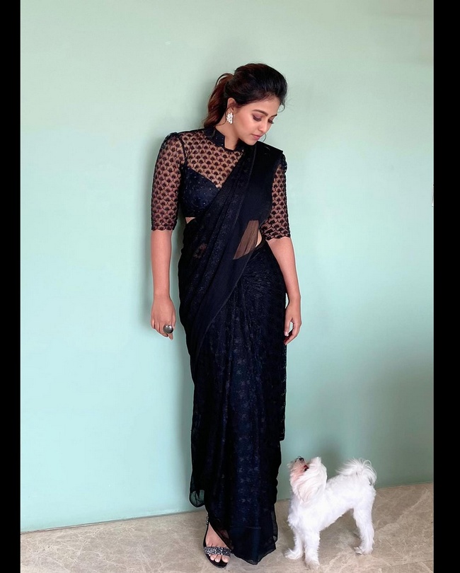 Telugu Actress Anjali Alluring Poses in Black Saree