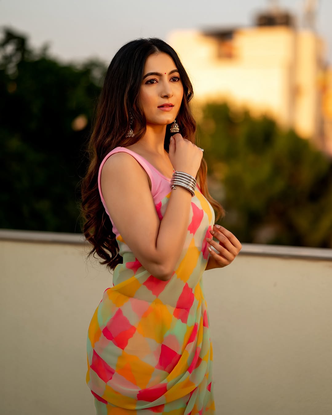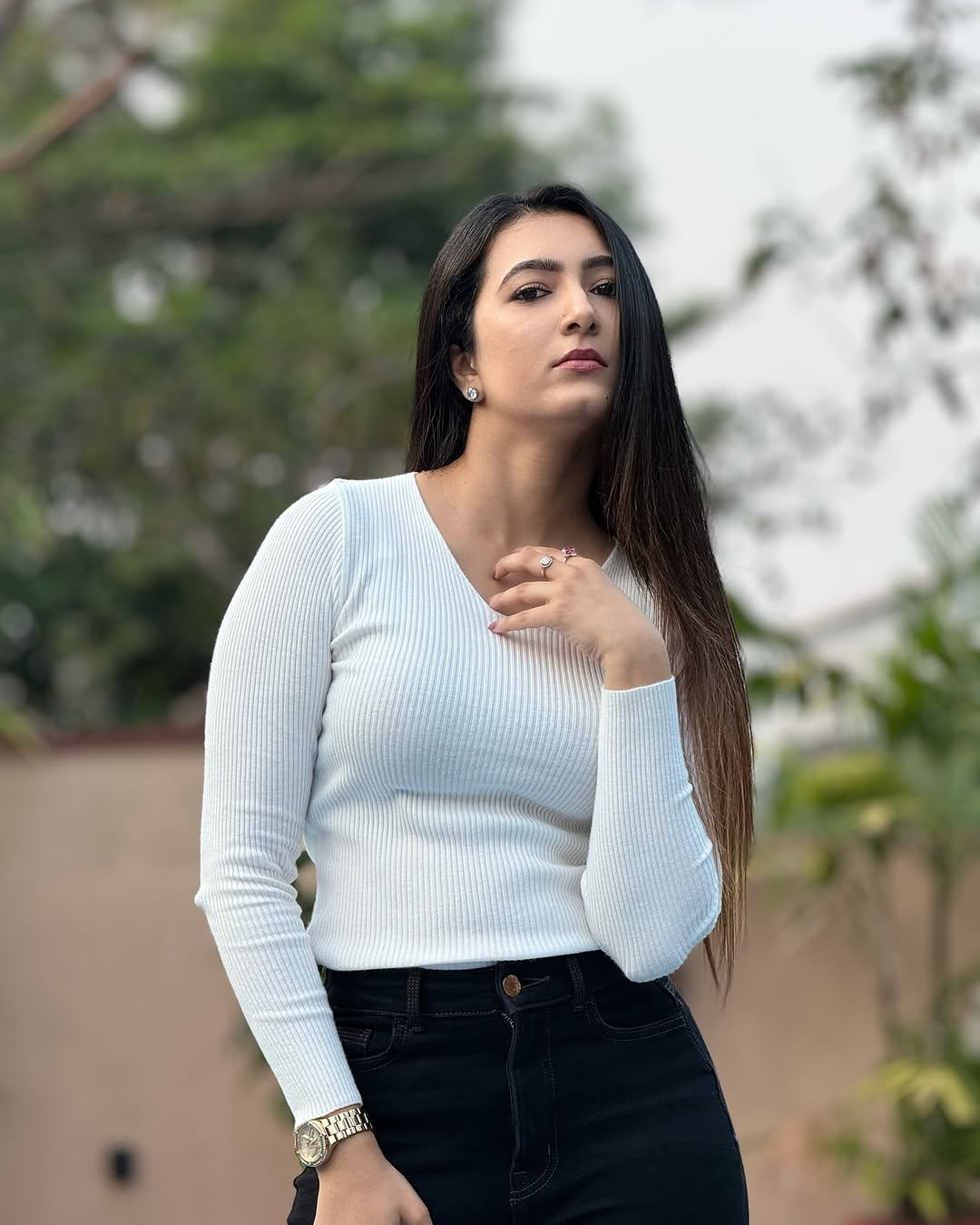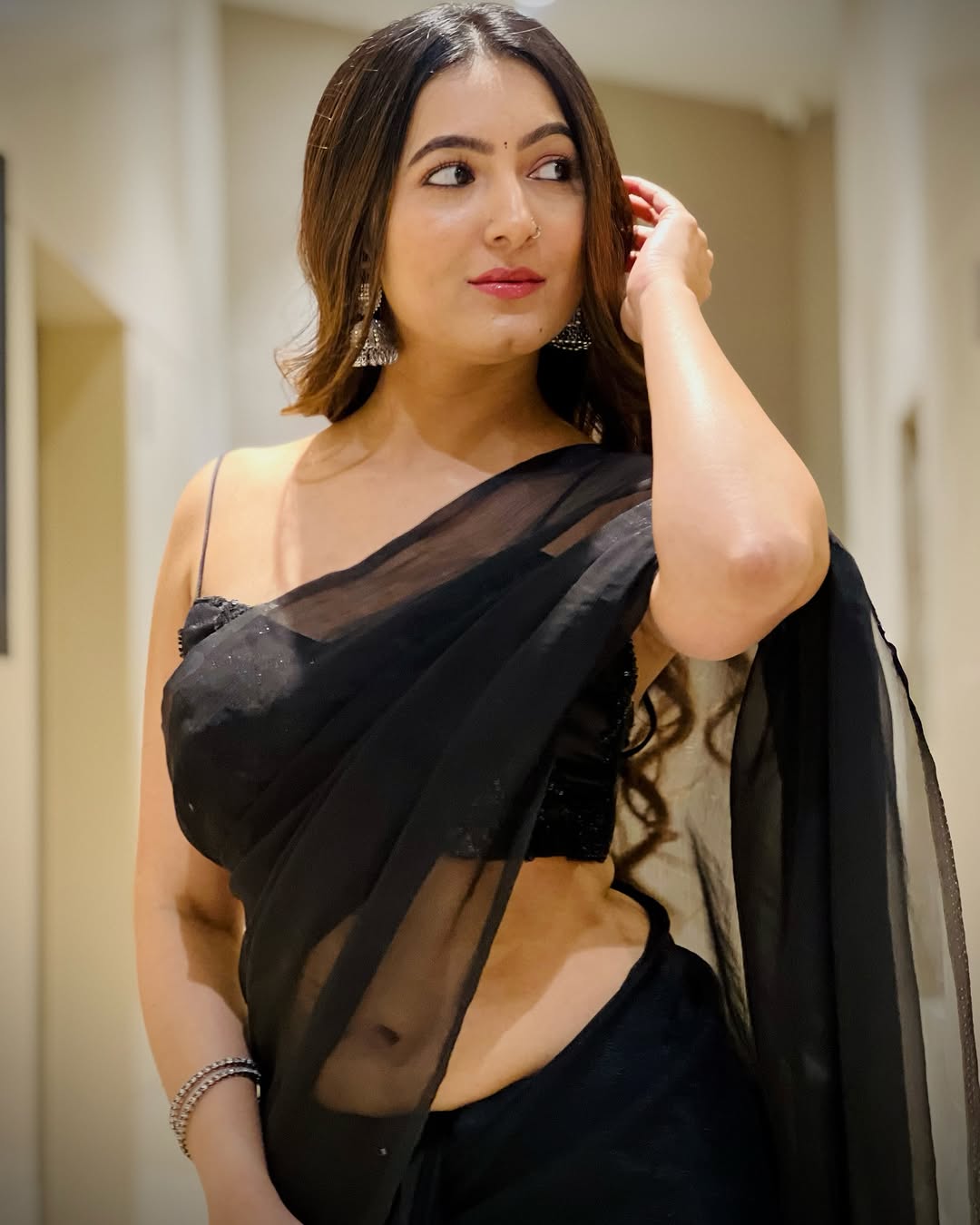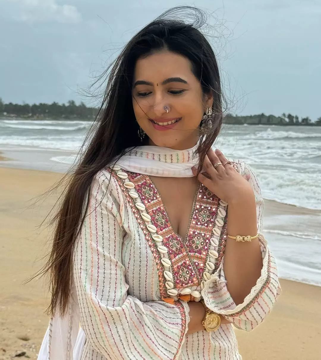 Adhvithi is a true fashion icon, effortlessly blending elegance with contemporary trends.