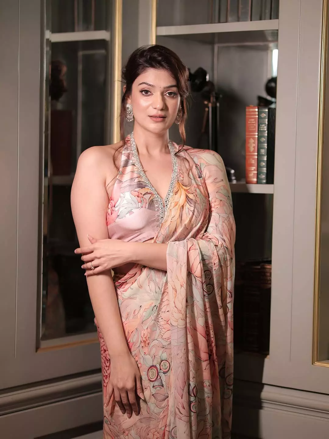 Aditi Gautam known for her presence in both Telugu and Hindi films shared an image on her Instagram where she looks adorable in a beautiful floral saree. The saree complements her grace with intricate floral patterns.