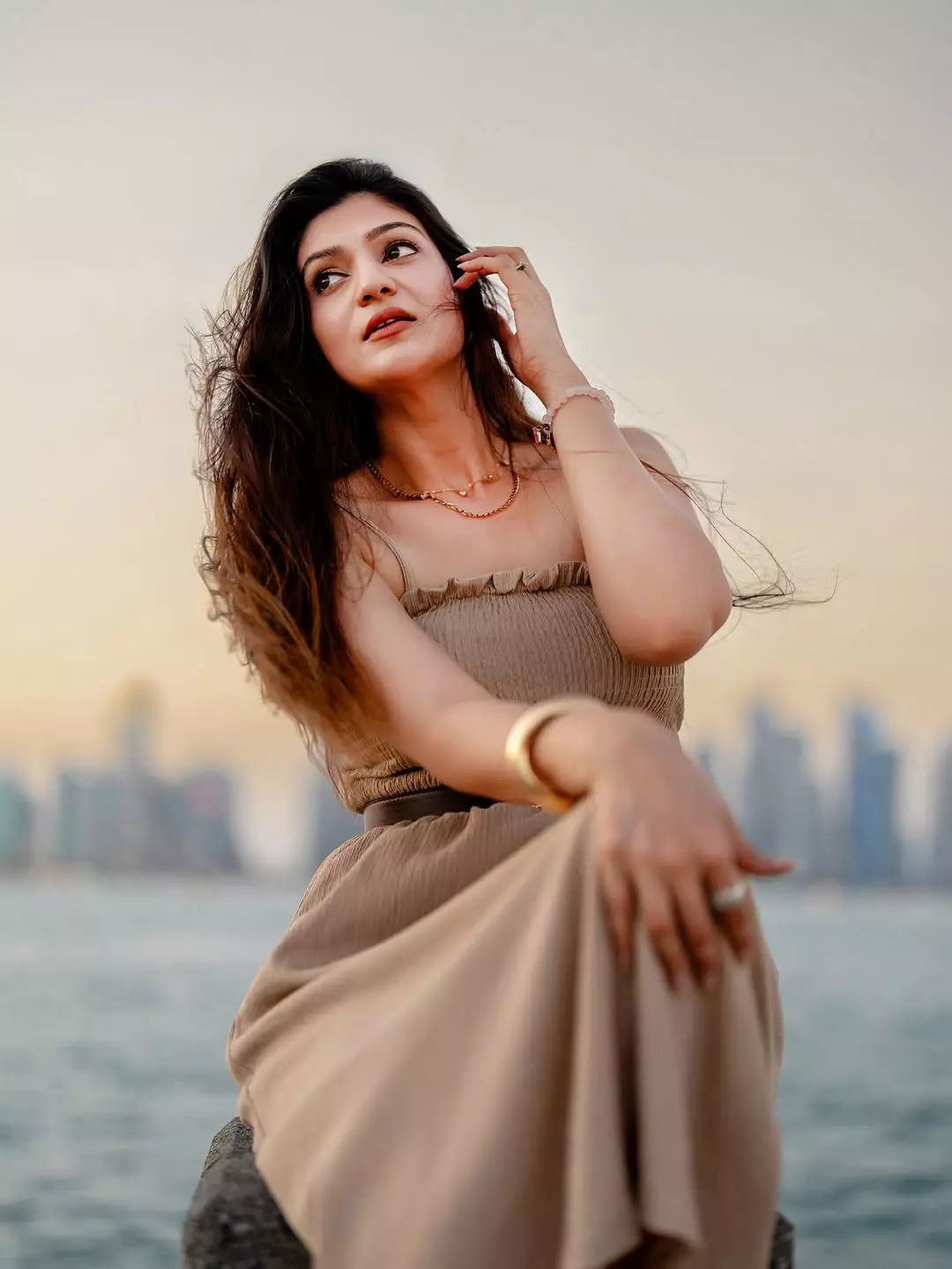Aditi Gautam Glows in Red Saree on the Beach