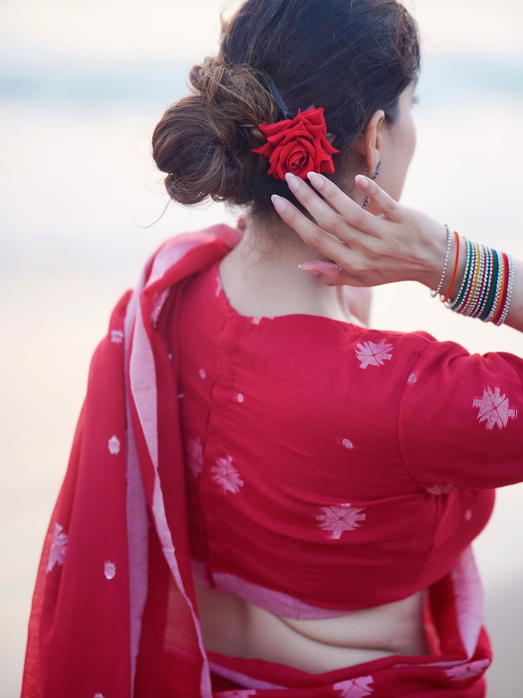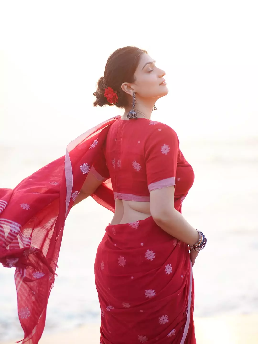 Aditi captioned "Some unedited clicks.". The vibrant orange saree she’s wearing with its minimal design is shows her best fashion choices that effortlessly blend traditional and contemporary styles.