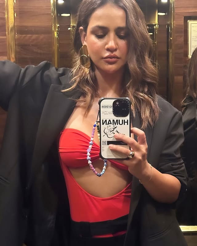 Styled with subtle accessories and sleek finishing touches, the outfit highlights her confident and poised presence, making it perfect for formal or semi-formal occasions.