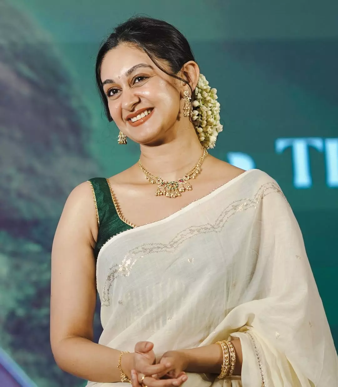 In the caption, Aishwarya mentioned that the moment marks two celebrations connected to Seetha Payanam. This film holds special importance in her life, not just as an actor but also as a daughter. The styling for the shoot was done by Khushi Jagadisha, while the outfit came from Zenoraofficial. Jewellery was selected from The Jewel Gallery, and the photographs were clicked by Sujana Zip. Every element came together to reflect simplicity and emotional depth rather than glamour.