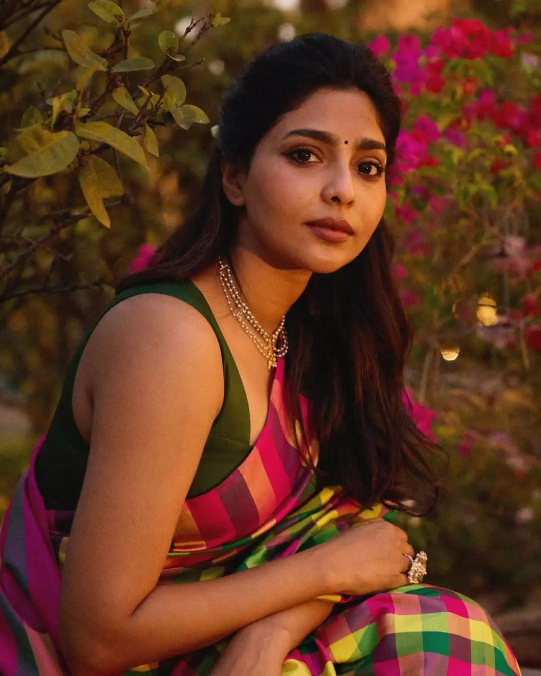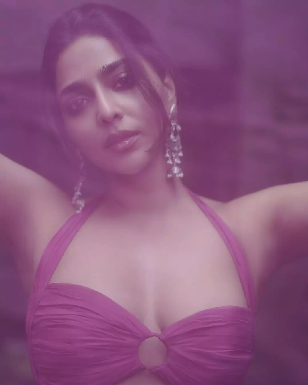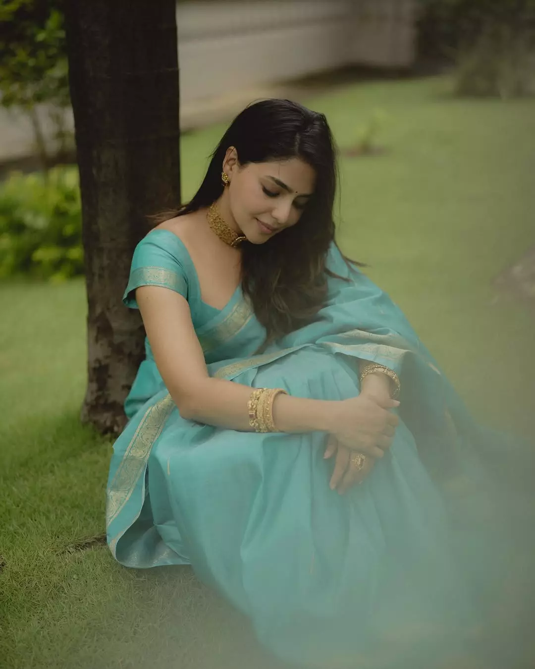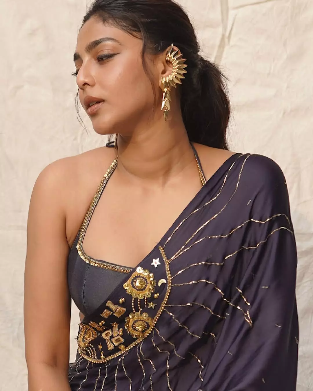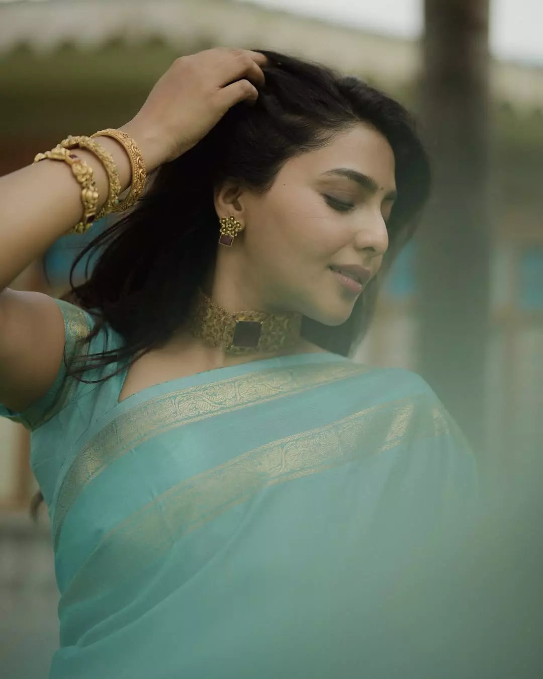 Actress Aishwarya Lekshmi posted a new picture on Instagram that has captured attention. She appeared in a traditional blue saree and carried it with charm.