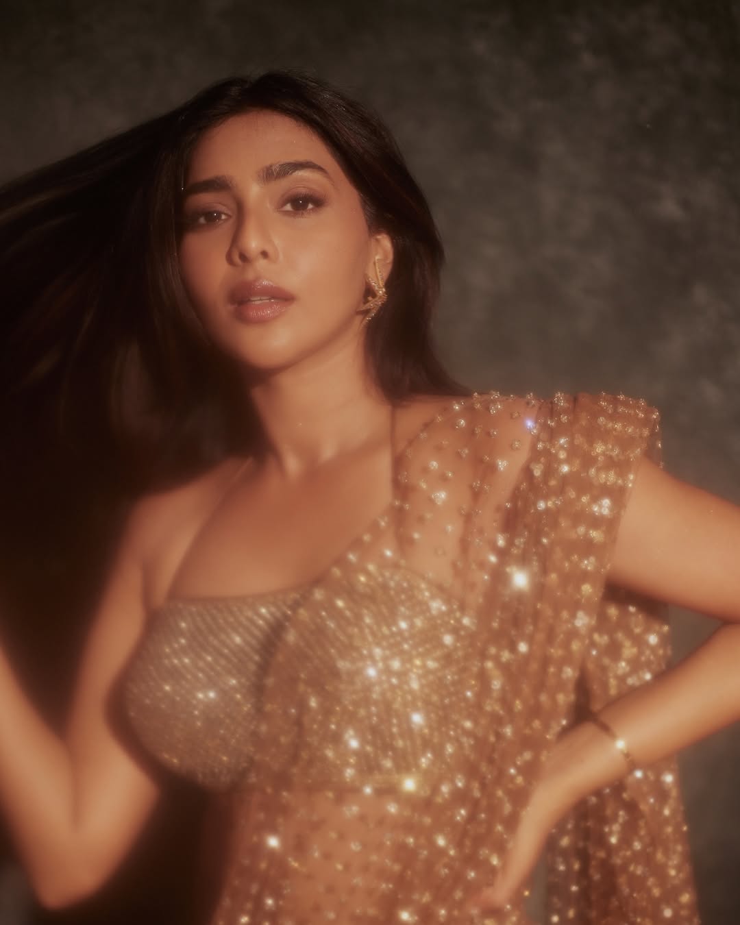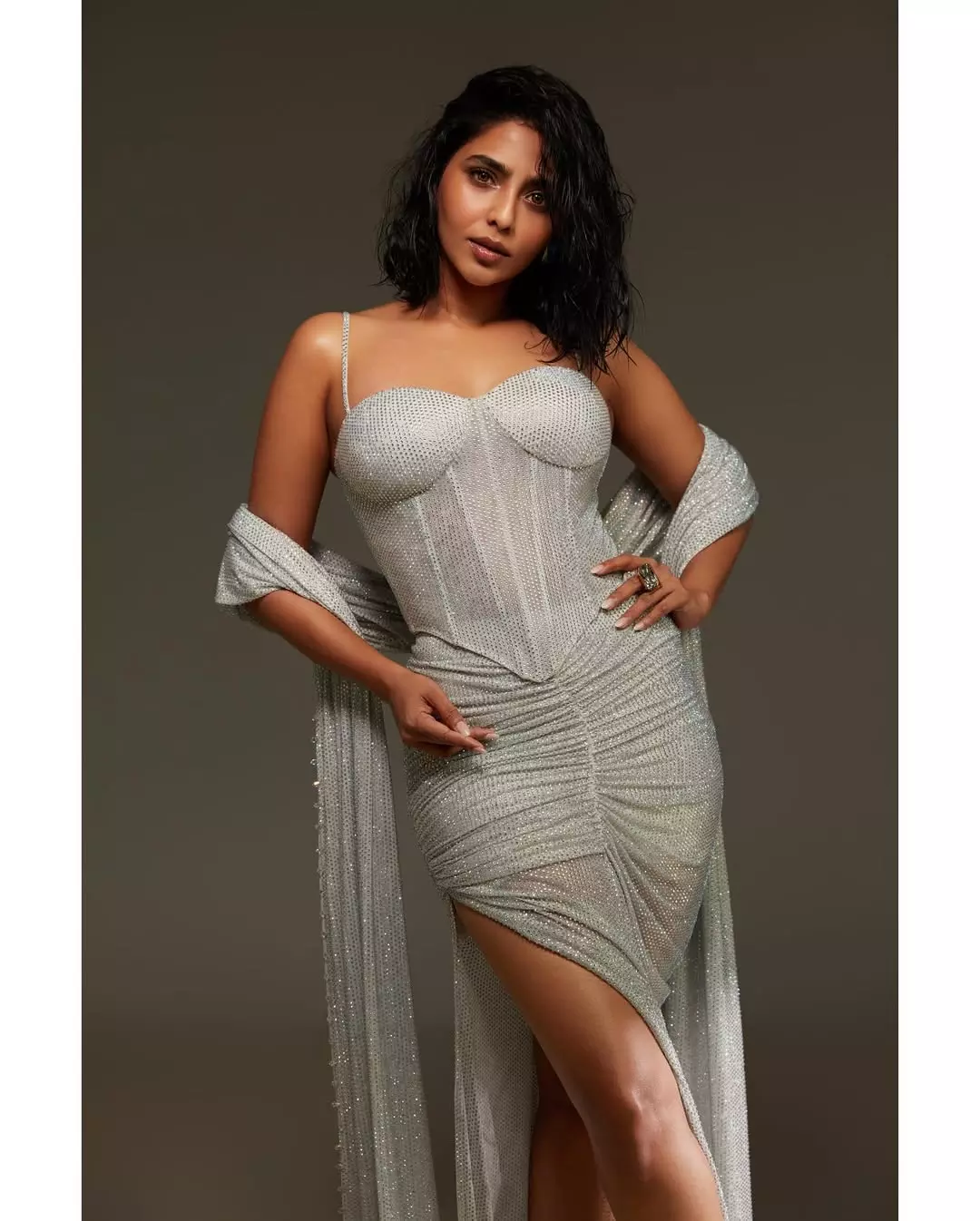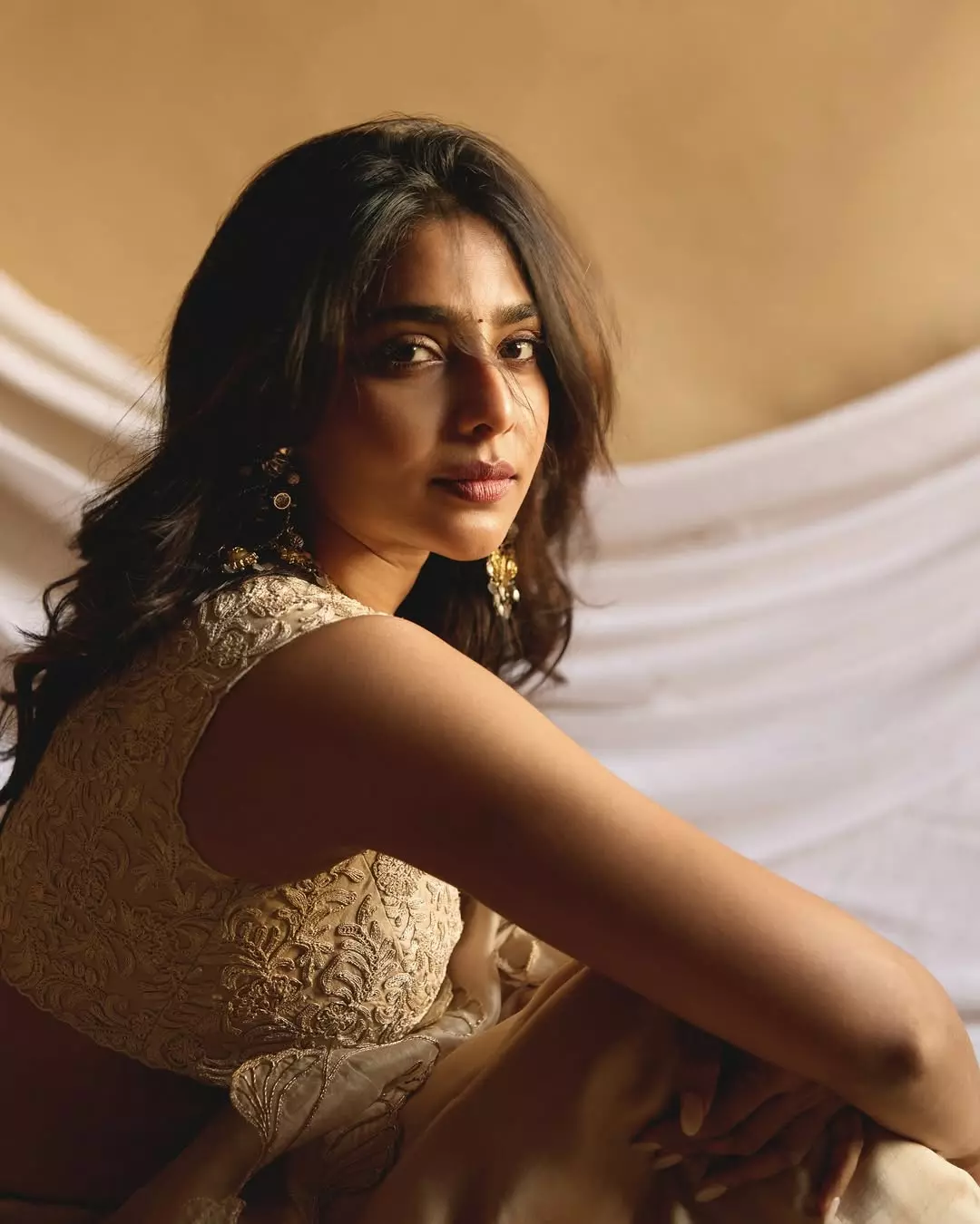She credited her look to the fashion label House of Tuhil. The photos were clicked by Merin Georg. Her makeup was done by Vasan Makeup Artist. She looked calm and happy as she smiled in the picture.