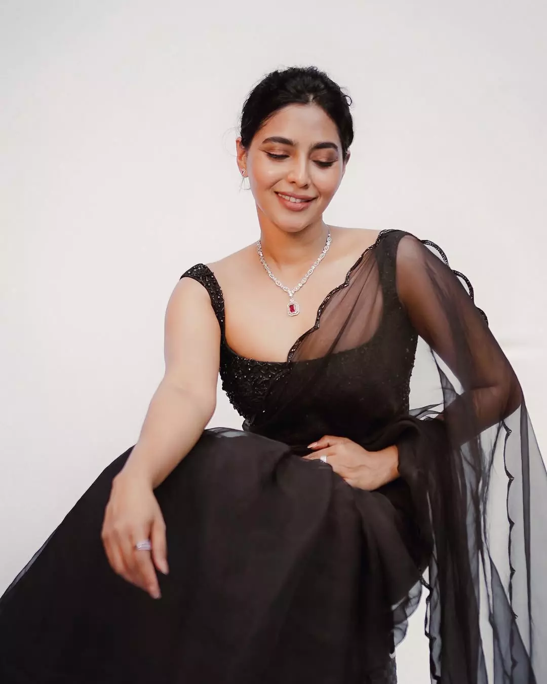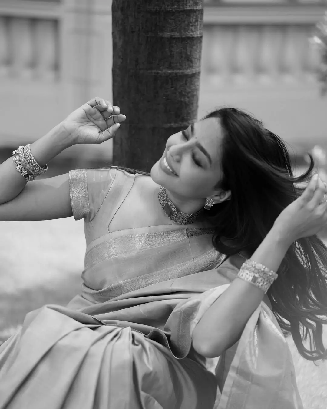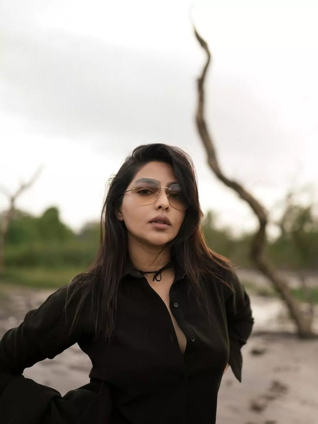 She credited her look to the fashion label House of Tuhil. The photos were clicked by Merin Georg. Her makeup was done by Vasan Makeup Artist. She looked calm and happy as she smiled in the picture.