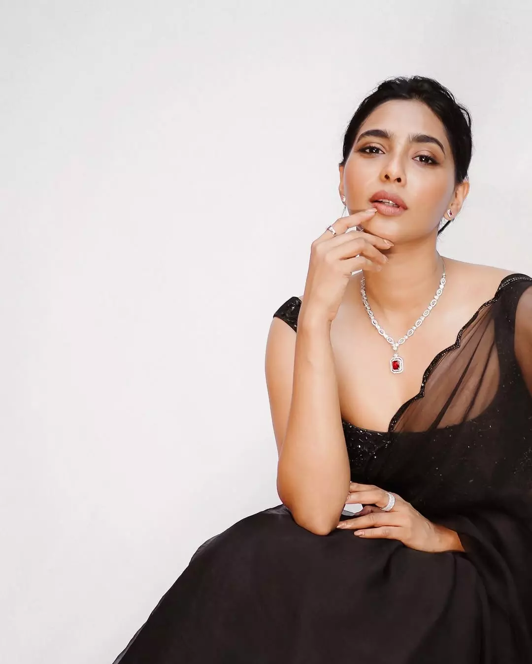 Actress Aishwarya Lekshmi posted a new picture on Instagram that has captured attention. She appeared in a traditional blue saree and carried it with charm. She added the caption, “Ham Tere pyaar mein ….” followed by a blue heart emoji.