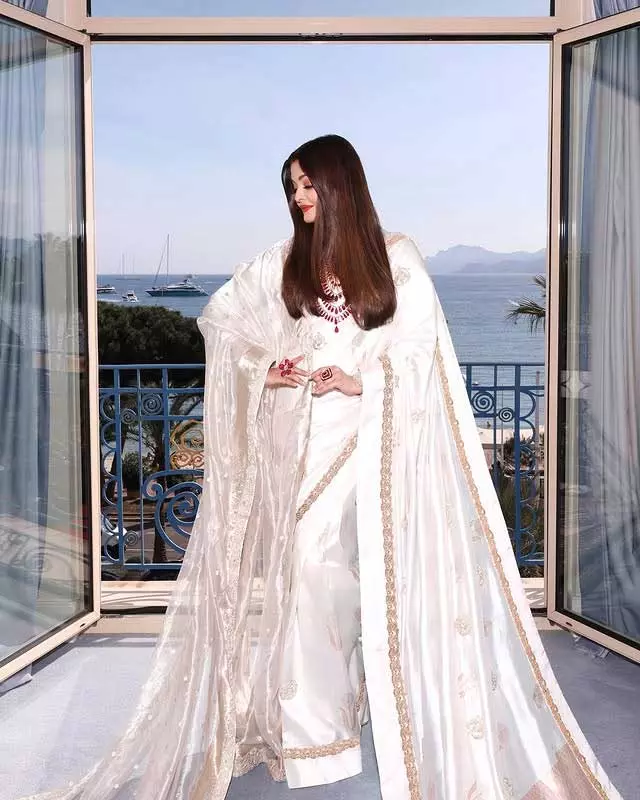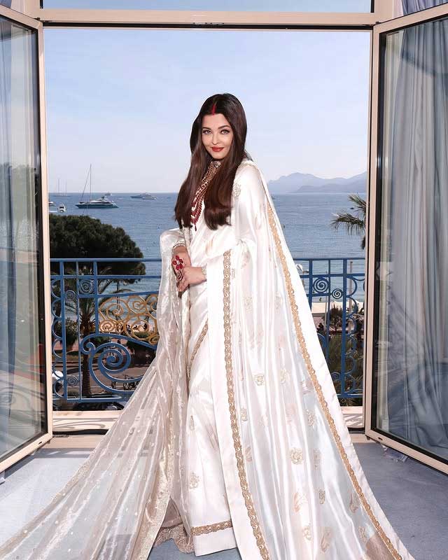 Aishwarya Rai Bachchan Stuns in Ivory Banarasi Saree at Cannes 2025