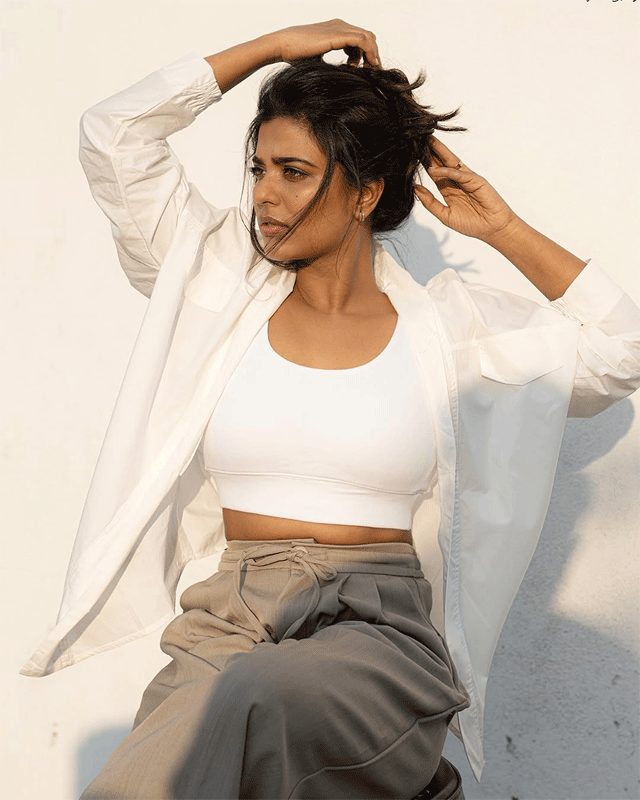 Aishwarya Rajesh sets the mood ablaze in a sultry black mini dress, reclining with effortless allure under dramatic golden light. With one hand shading her eyes and those killer legs stealing the frame, she exudes raw sensuality and quiet confidence in this captivating click.