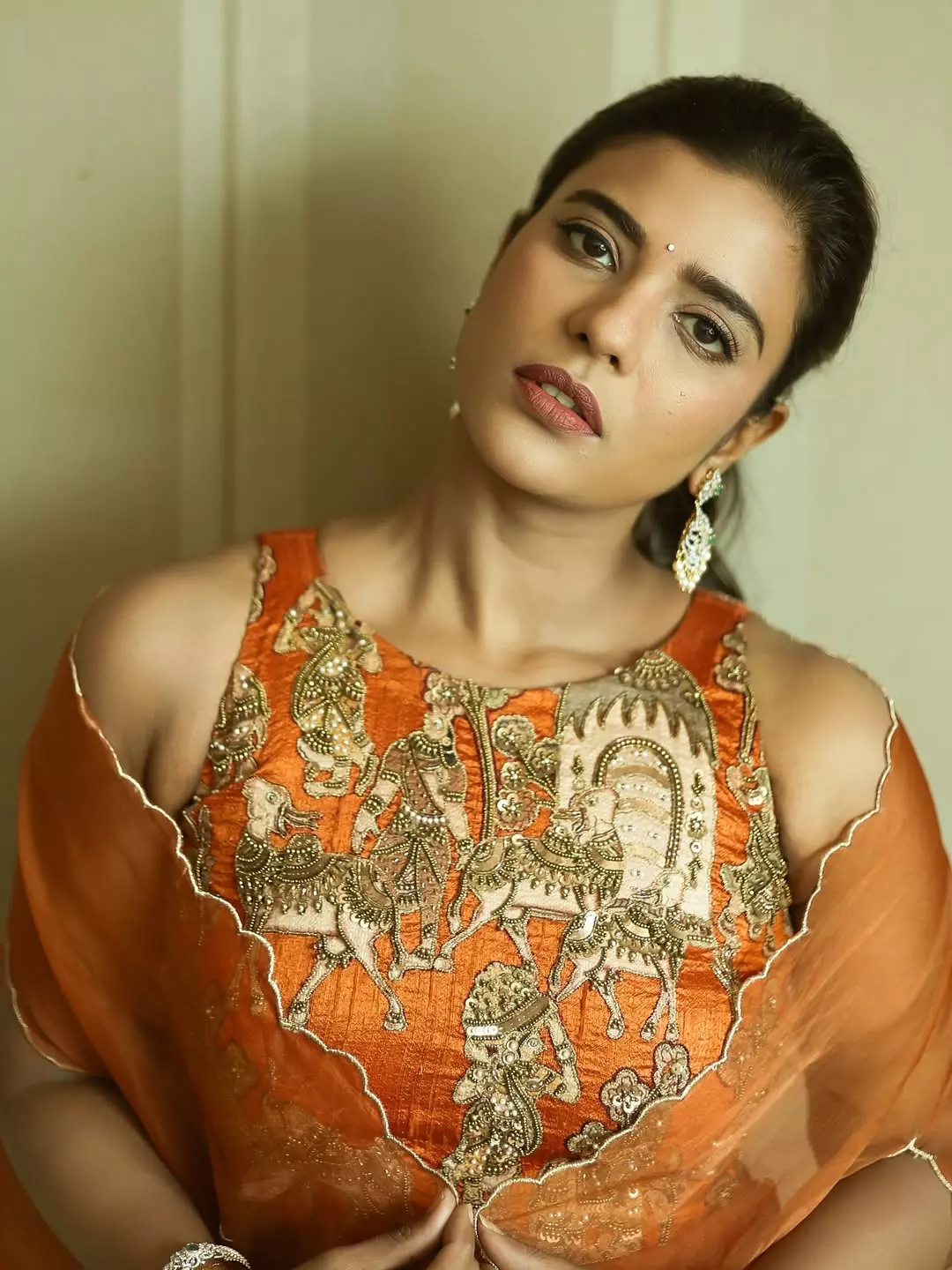 The moment was captured elegantly by @aruna_.varshini, with lighting that enhanced Aishwarya’s natural radiance. Her glowing makeup, done by @ananthmakeup, brought subtle drama to her eyes and a soft finish to her lips, making the overall look timeless.