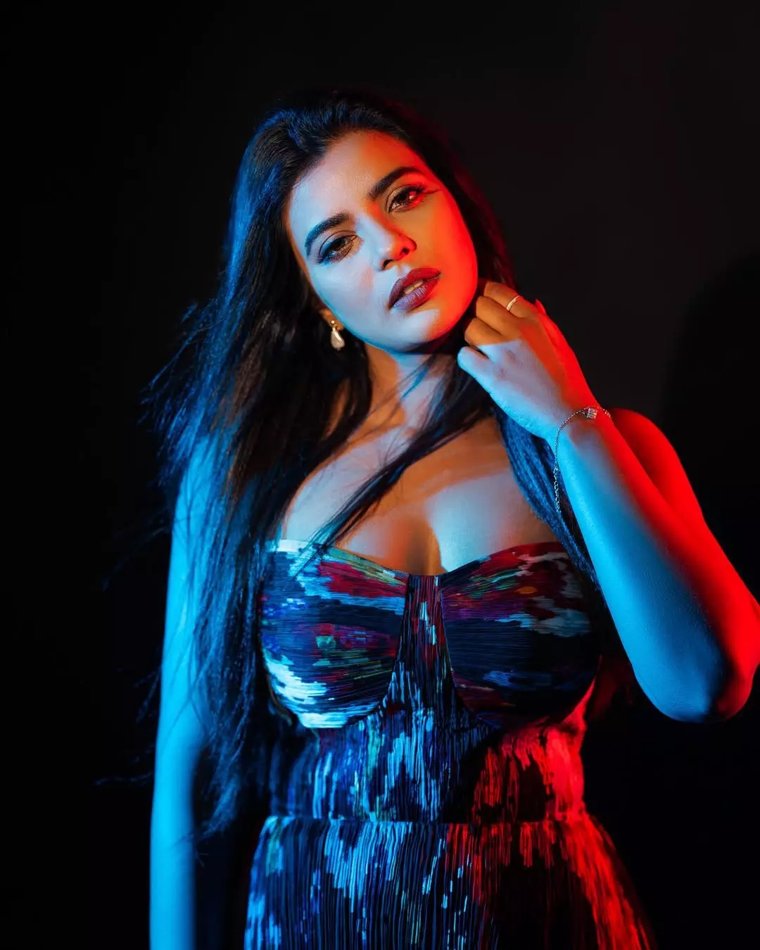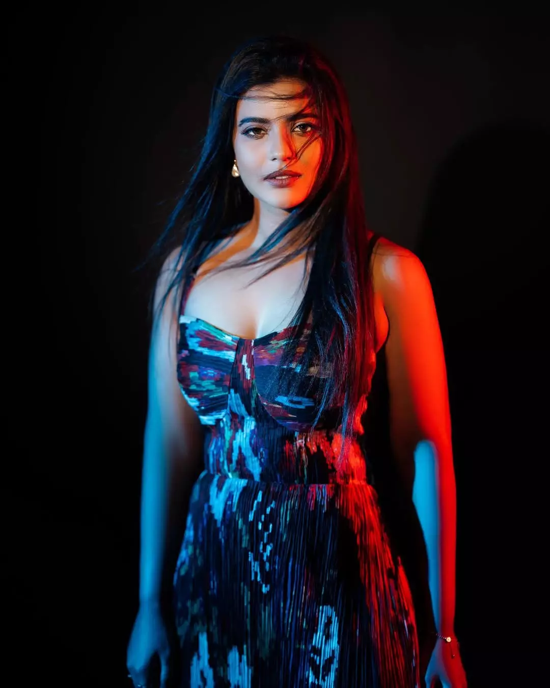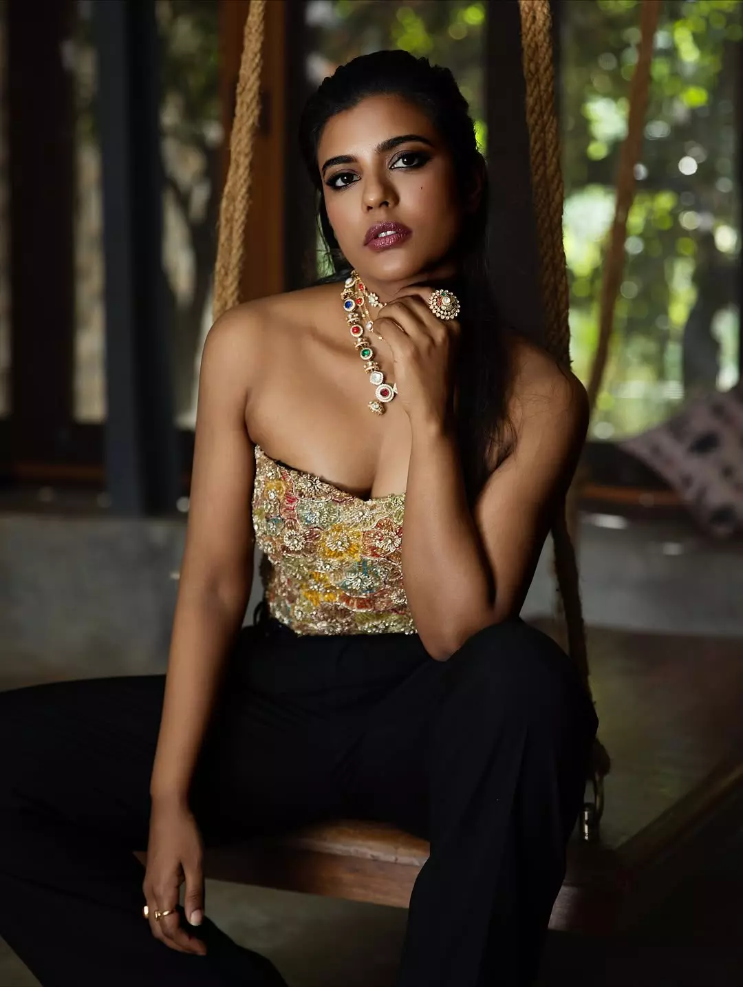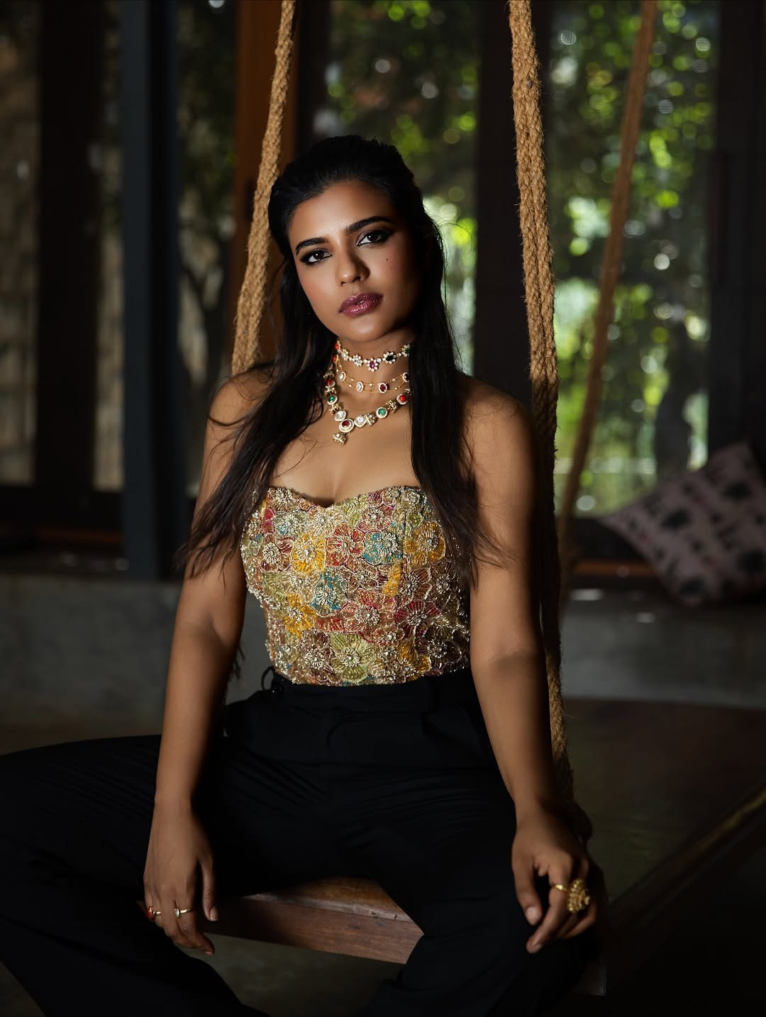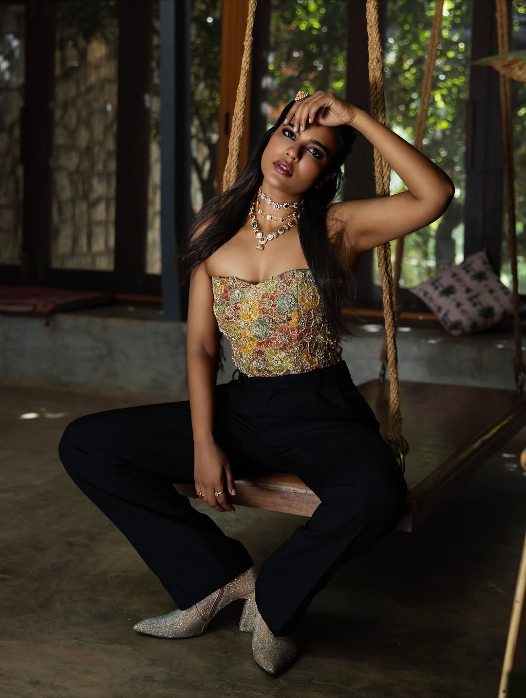 Acclaimed Tamil actress Aishwarya Rajesh captivates in her latest photoshoot, sporting a sleek black ribbed crop top paired with high-waisted denim jeans.
