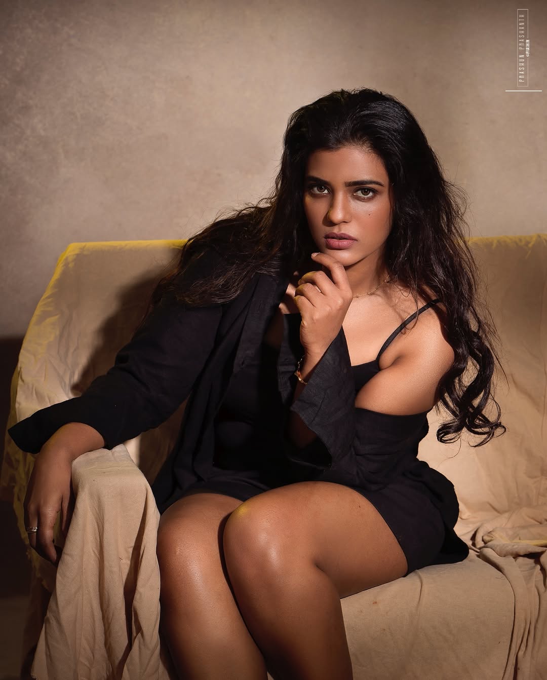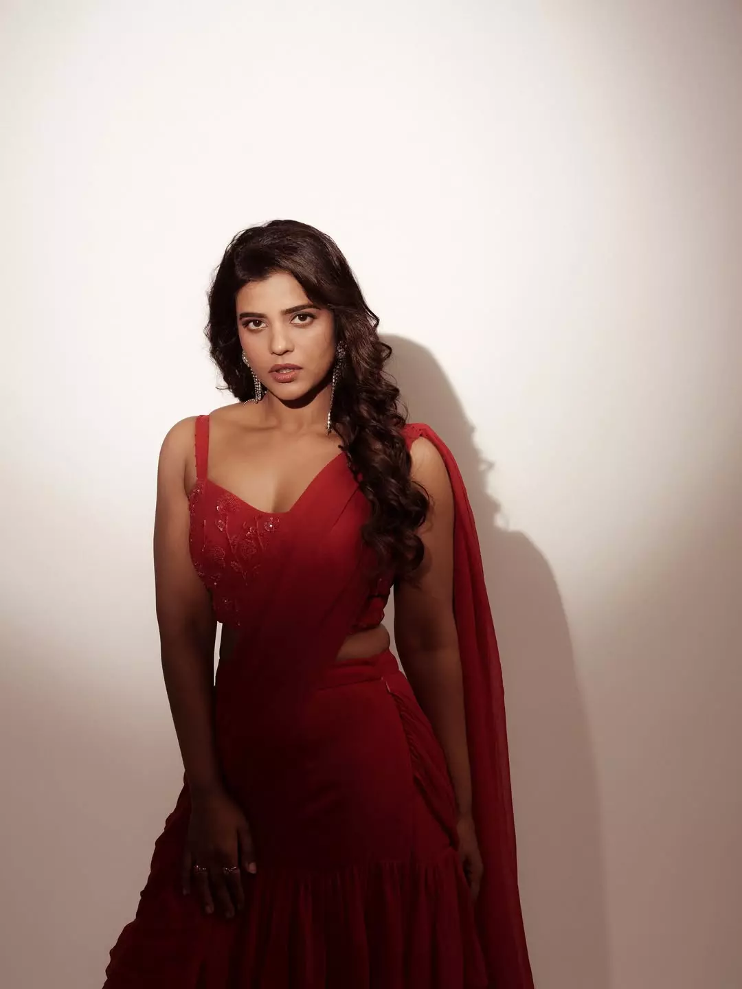 Acclaimed Tamil actress Aishwarya Rajesh captivates in her latest photoshoot, sporting a sleek black ribbed crop top paired with high-waisted denim jeans. Photographed by Teja Santhosh, the sun-kissed frames capture her natural glow and confident poise against a minimalist white backdrop, with windswept hair adding a touch of effortless allure.