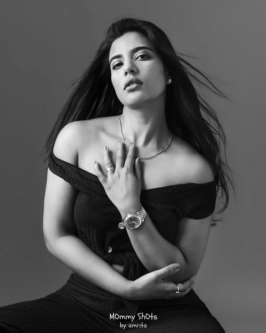 For this page Aishwarya Rajesh posed in a black dress with a simple chain and watch. MThe photographer described her as inspiring, authentic and graceful and it's really true.