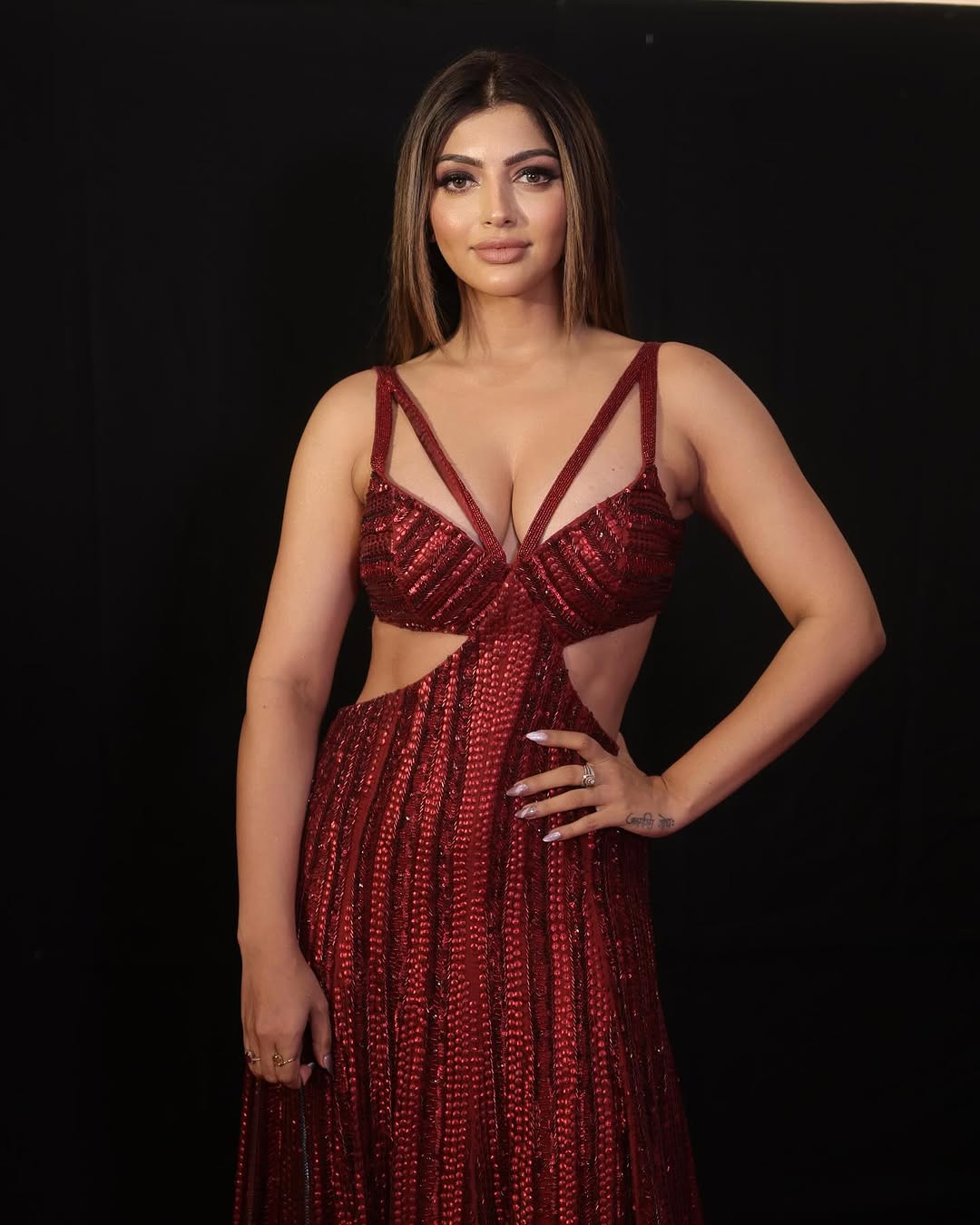 Akanksha Puri dazzles in this breathtaking metallic shimmer gown, radiating elegance and bold confidence
