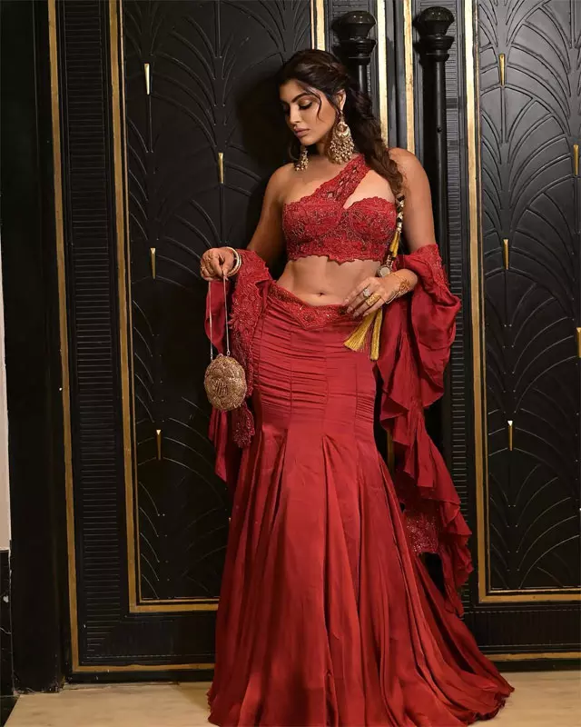 Akanksha Puri exudes sheer elegance and confidence in this mesmerizing photo. Dressed in a striking orange outfit, she effortlessly blends glamour with poise, making a bold fashion statement. The stunning backdrop enhances her radiant aura, while her flawless makeup and perfectly styled hair add to the overall allure. With her captivating expression and graceful pose, Akanksha Puri once again proves why she is a true style icon.