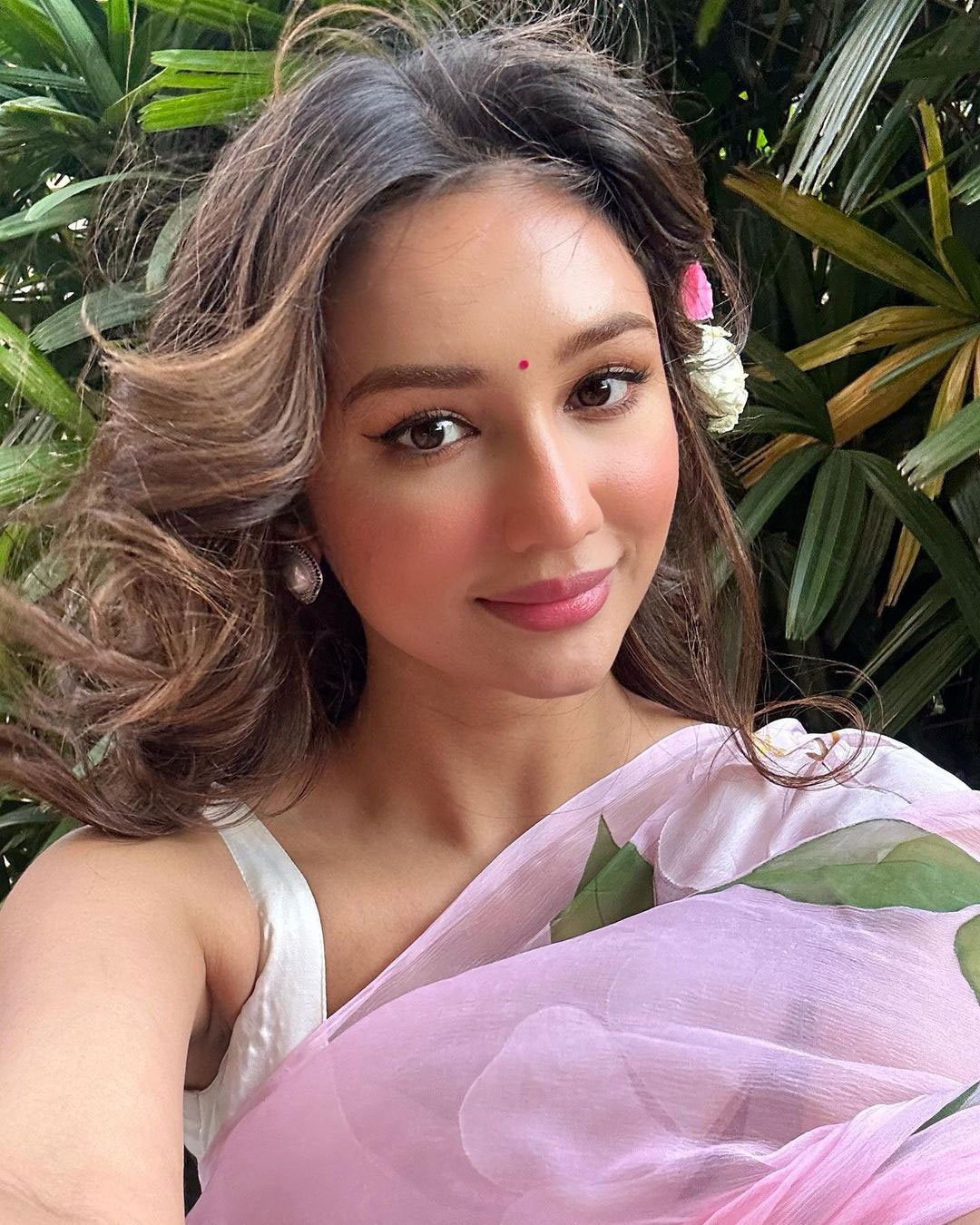 Akanksha Sharma has once again impressed fans with her graceful style. In her latest Instagram post, she looks adorable in a soft pink and white floral saree. The dress is from Kapardara India, paired with elegant jewellery by Shop Naymee. Her hair and makeup were done beautifully by Vibhagu Sain and Vishakha Djain, giving her a fresh and natural look. Styled by Stacey Cardoz, Akanksha looked elegant and traditional, yet modern.