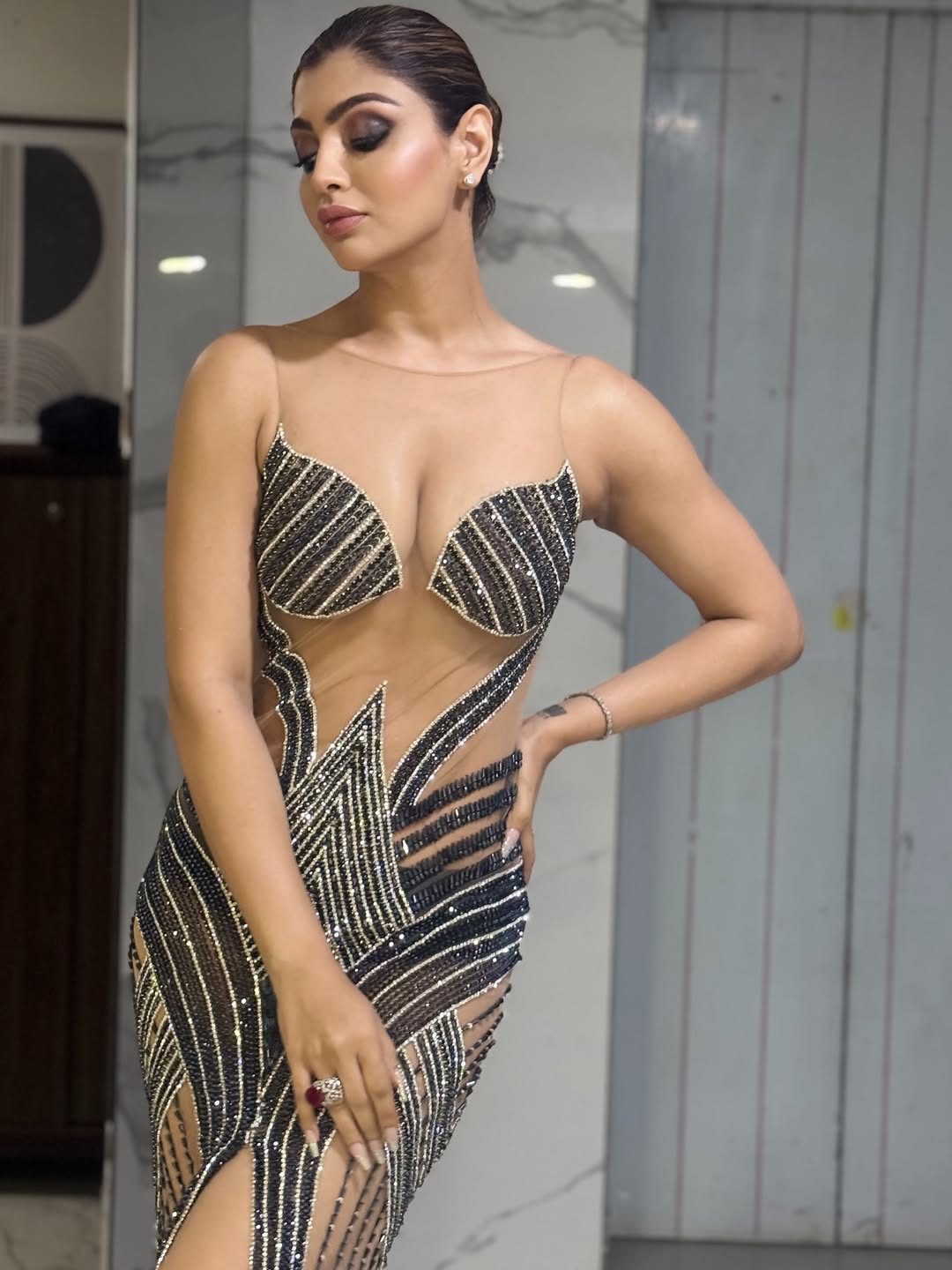 Akanksha Puri, known for her debut in the Tamil film Alex Pandian, later gained national fame with her portrayal of Goddess Parvati in the TV show Vighnaharta Ganesha. She has also starred in Bollywood films like Calendar Girls, showcasing her range and presence across industries. Apart from acting, she’s often in the spotlight for her stylish appearances and social media updates that reflect her bold, confident personality.