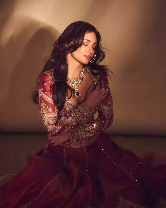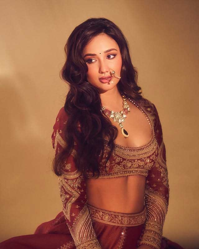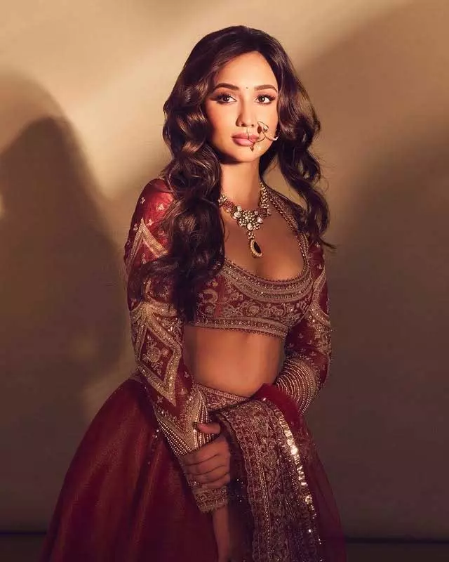Her jewelry from Shopnaymee, Niramya Jewels, and Offbeatmediain glittered like a constellation, and her outfit, designed by Torani Official, was a work of beauty. Her striking look was perfectly complemented by Harry Singh's hairstyle and Vibhagusain's makeup.