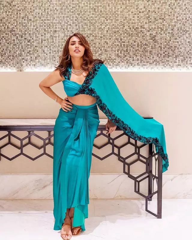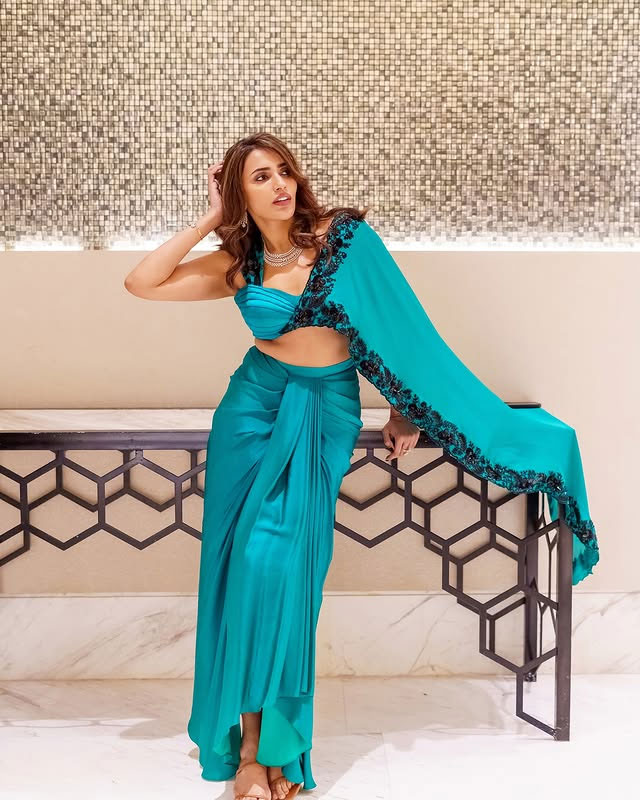 Her traditional look was completed with soft curls and minimal accessories by reflecting grace and charm.