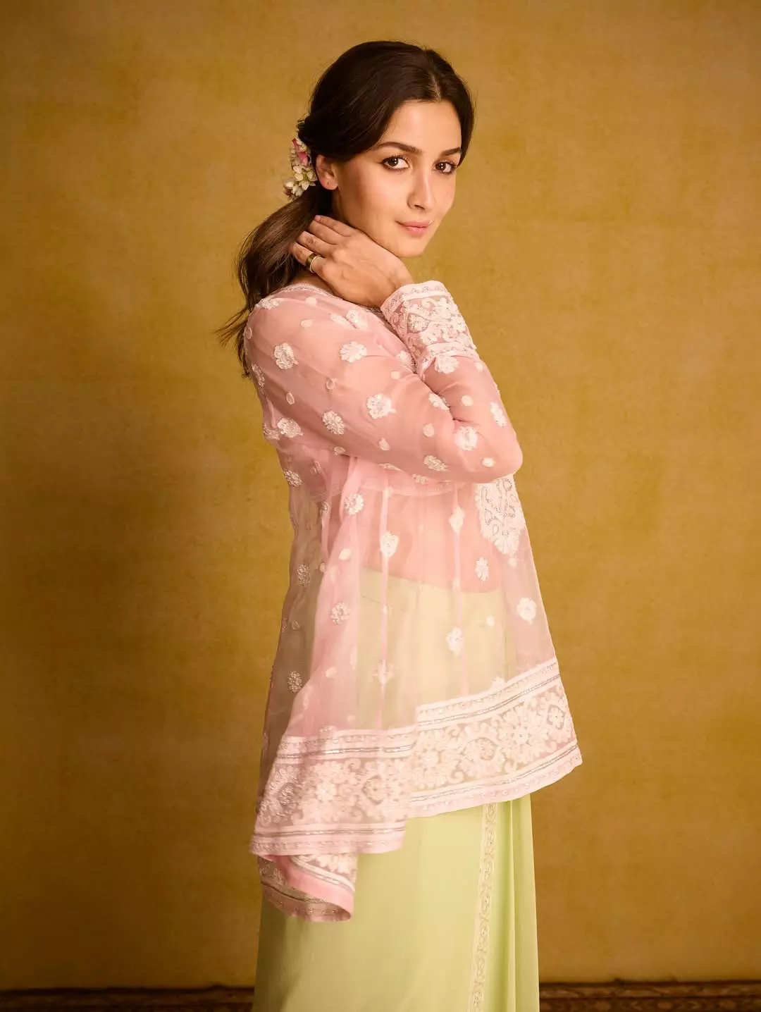 In one photo, Alia and Ranbir can be seen sharing a cozy moment, with Ranbir lovingly holding Alia from behind as they smile for the camera. Alia looked graceful in a light-pink chikankari kurta paired with a lime-green skirt, while Ranbir wore a classic white kurta. She captioned the post, “Dillwali Diwali. Happy Diwali to you and yours.”