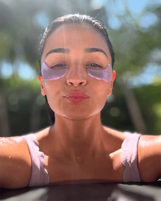 Is there anything Alia Bhatt can�t do? The Bollywood star just lit up Instagram with a fresh-faced, poolside selfie that fans can�t stop talking about. The photo shows Alia soaking up some sun and self-care vibes, with a radiant glow and under-eye patches that scream "pamper time." Dressed in a lavender swimsuit and flashing a subtle pout, she captioned the post: �Thoda swim - thoda TLC� with a yellow heart emoji. And the background music? A vintage touch��Pretty Little Baby� by Connie Francis�setting the perfect chill mood.