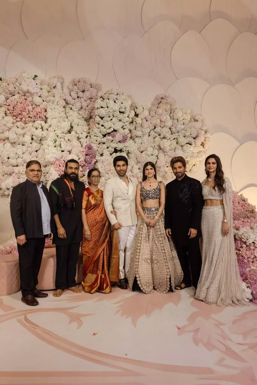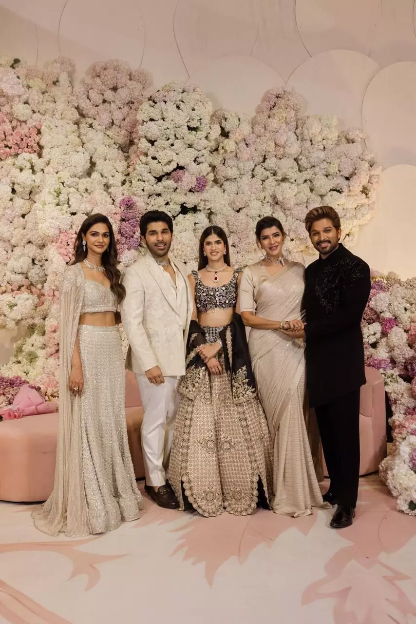 Mass Maharaja @RaviTeja_offl garu, star entertainer @NaveenPolishety , @LakshmiManchu garu, and young hero @IamRoshanMeka and family joined the celebrations. Macho Star @YoursGopichand garu, @IamJagguBhai garu, @vennelakishore garu, and blockbuster producer #NaveenYerneni garu further elevated the event's prestige.The grand gathering reflected the close-knit bonds of the Allu-Konidela family and the Telugu film industry, showering love and best wishes on Allu Sirish and Nayanika as they step into their new chapter together.