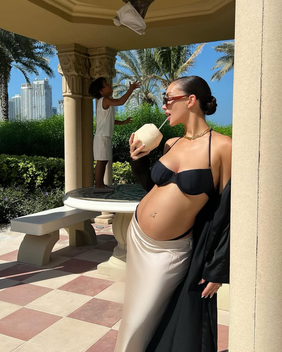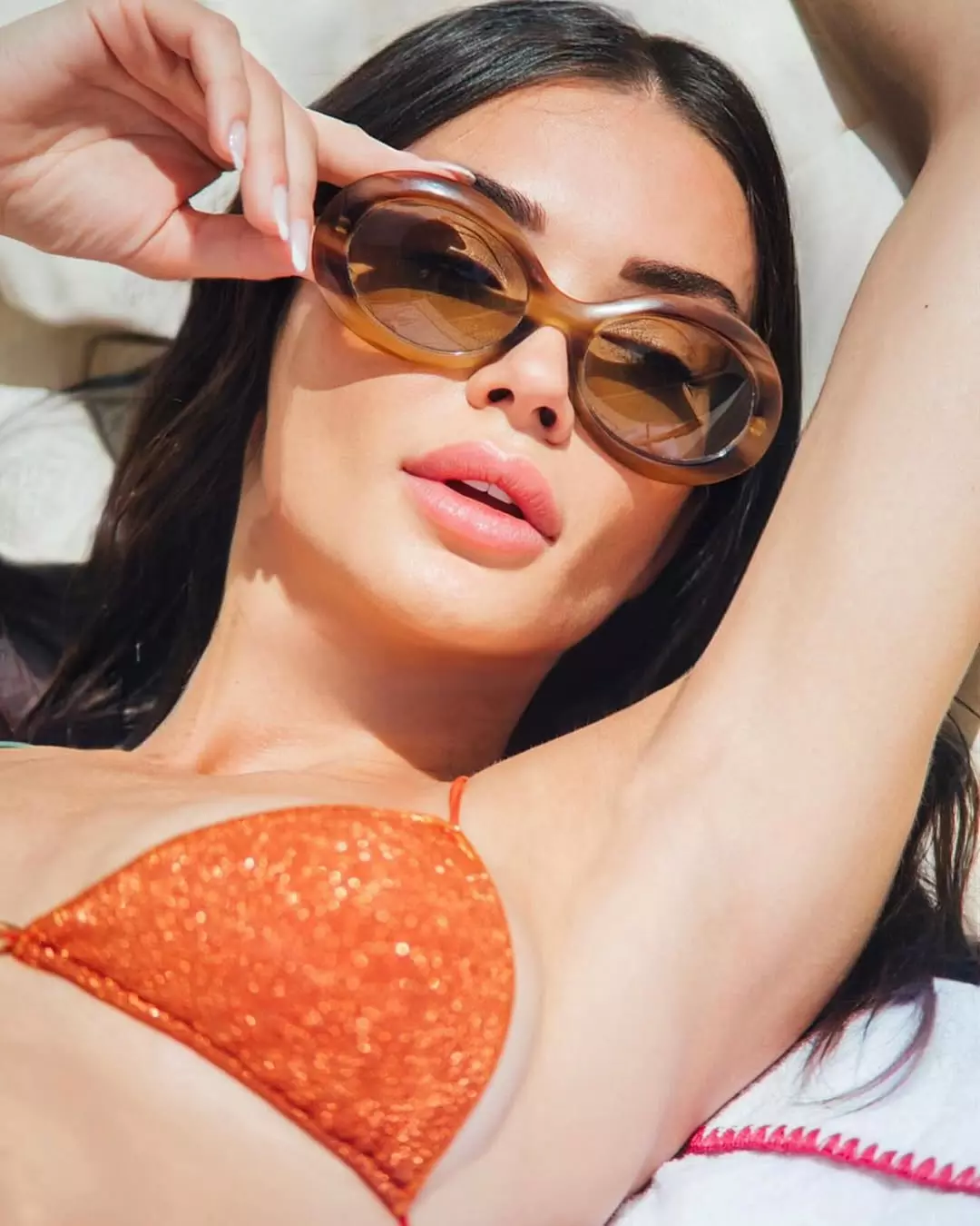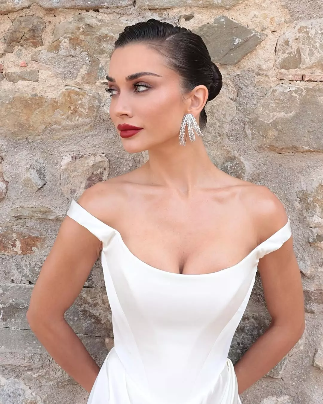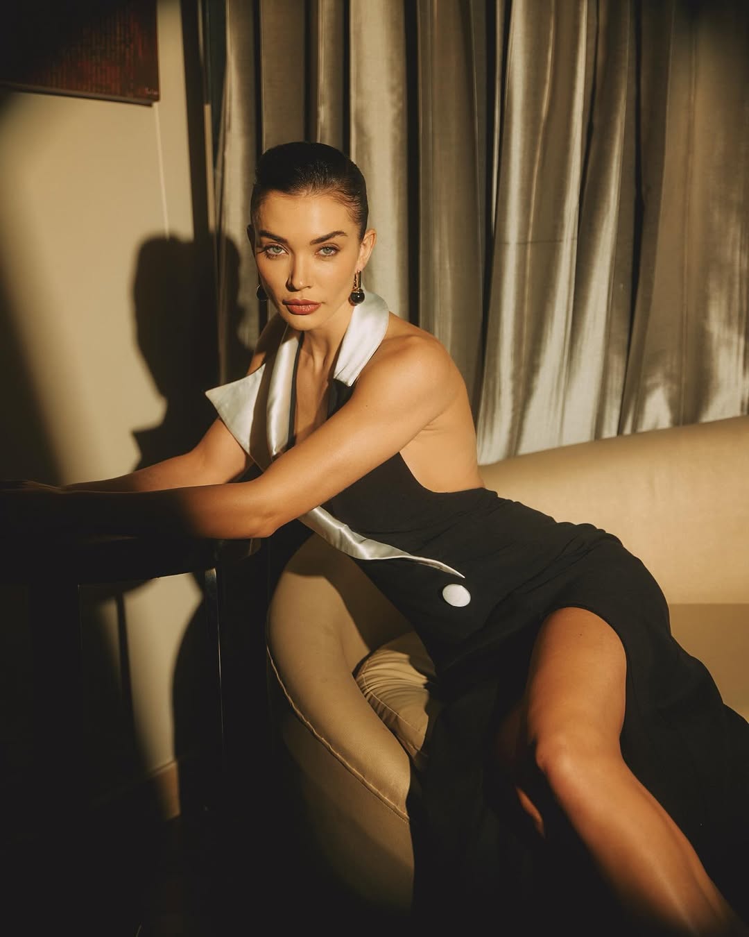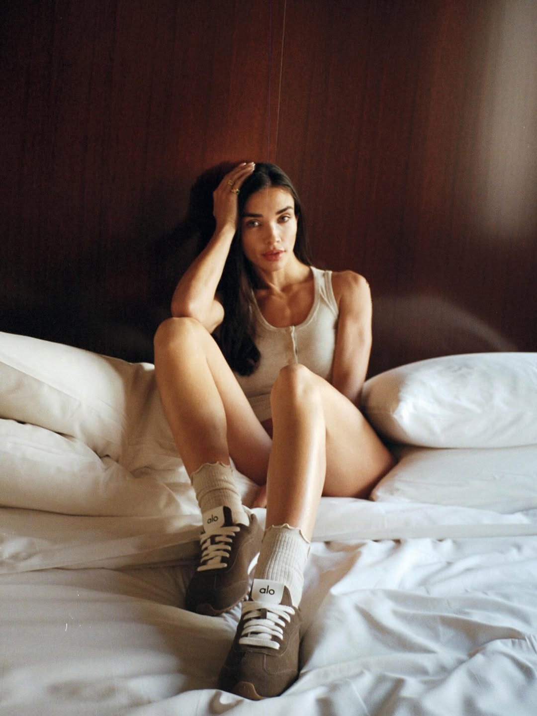 Amy Jackson Westwick (née Jackson), the British actress and model born January 31, 1992, in the Isle of Man, effortlessly blends glamour and poise in her latest snapshot. Lounging on a plush bed in a cozy hotel room, she wears a sleek beige tank bodysuit from @alo and @aloyoga, paired with signature Alo socks and sneakers. With tousled long hair, a hand in her locks, and a serene gaze, she captures pure relaxation in her caption: "Weekend Mood " – a perfect vibe of chill sophistication amid her busy life as a wife to Ed Westwick (married 2024) and mother of two.