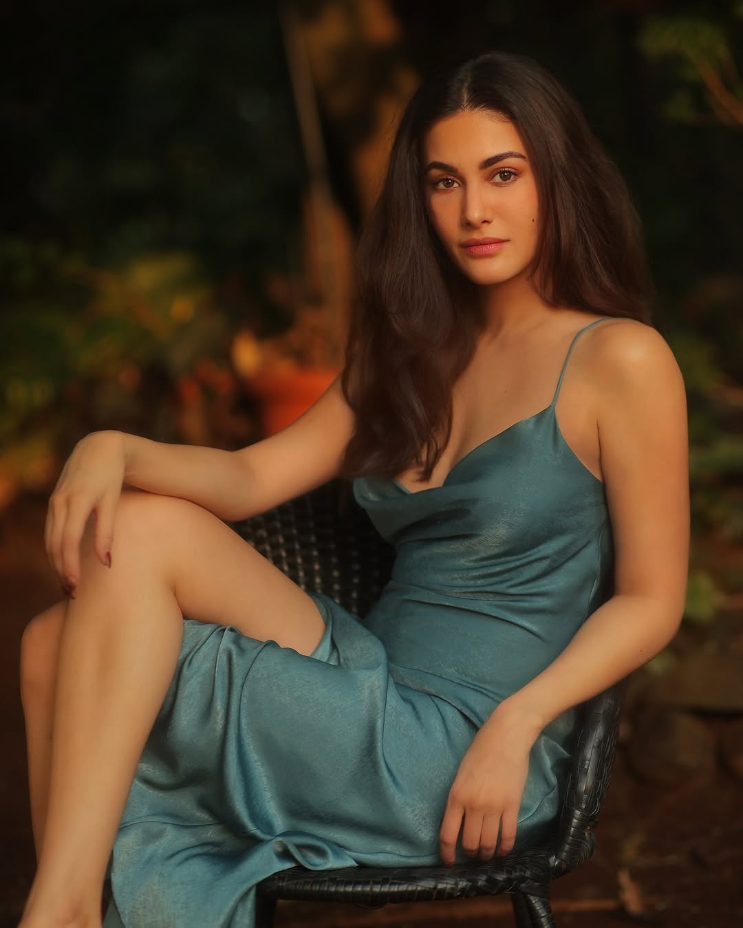 The stunning photo of Amyra Dastur radiates vibrant energy and elegance: Colour therapy anyone? She poses gracefully against a lush tropical backdrop with blooming trees and warm sunlight, her long brown hair flowing dramatically in the wind. Dressed in a striking blue peplum-style crop top paired with a colorful, flowing printed skirt featuring a high slit, she accessorizes with green dangling earrings, a statement watch, and subtle makeup that highlights her poised beauty. Credits: Outfit @advait_in, Jewels @ishhaara, Styled by @richamehta1990, Assisted by @sargammehra, MUA @fab_beauty___, Hair @hairbytabassum, Shot by @portraitshelter.