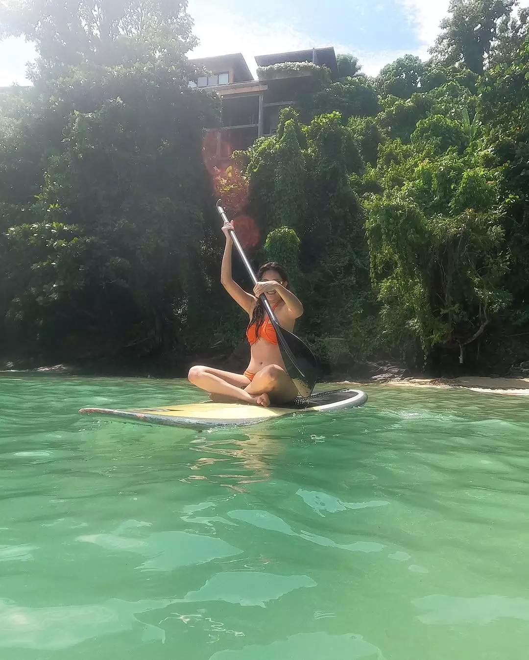 In this recent Instagram post, Amyra looks like a vision. She wore a smooth teal dress with a soft shine. She posed under warm sunlight and looked calm and confident. The natural background made the photo even more graceful. Her caption read, "Nothing like that sunset light."