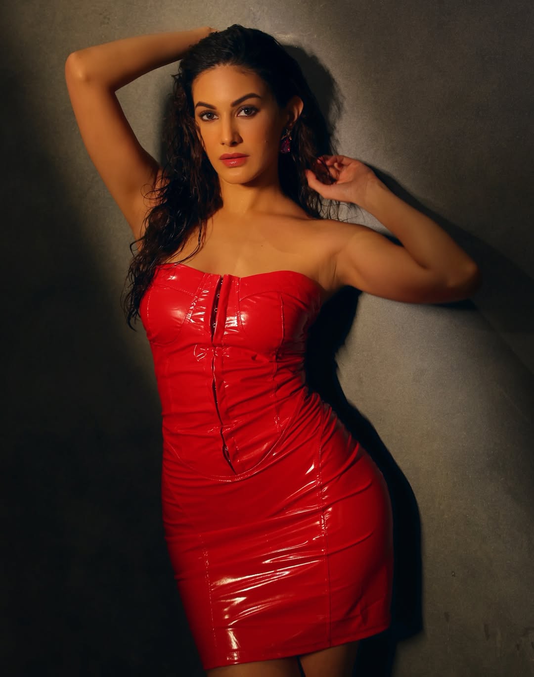 By: Tupaki Gallery Desk | 28 April 2026 1:27 PM ISTIn a striking new portrait, Amyra Dastur commands attention with effortless confidence and undeniable allure. Draped in a bold red ensemble that accentuates her silhouette, she radiates a magnetic blend of strength and sensuality. The glossy texture of the outfit reflects the warm light, creating a dramatic interplay of highlights and shadows that elevates the entire visual.