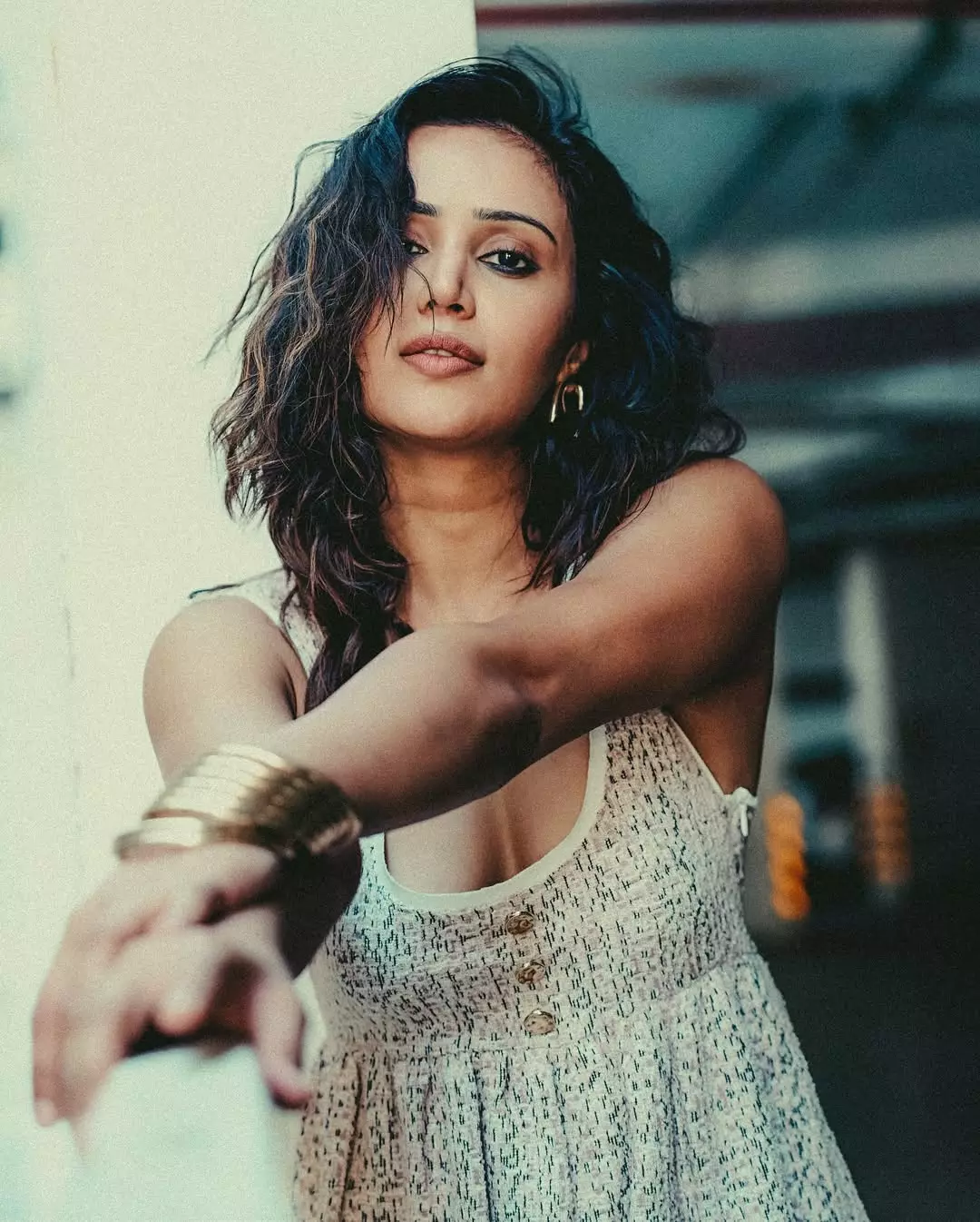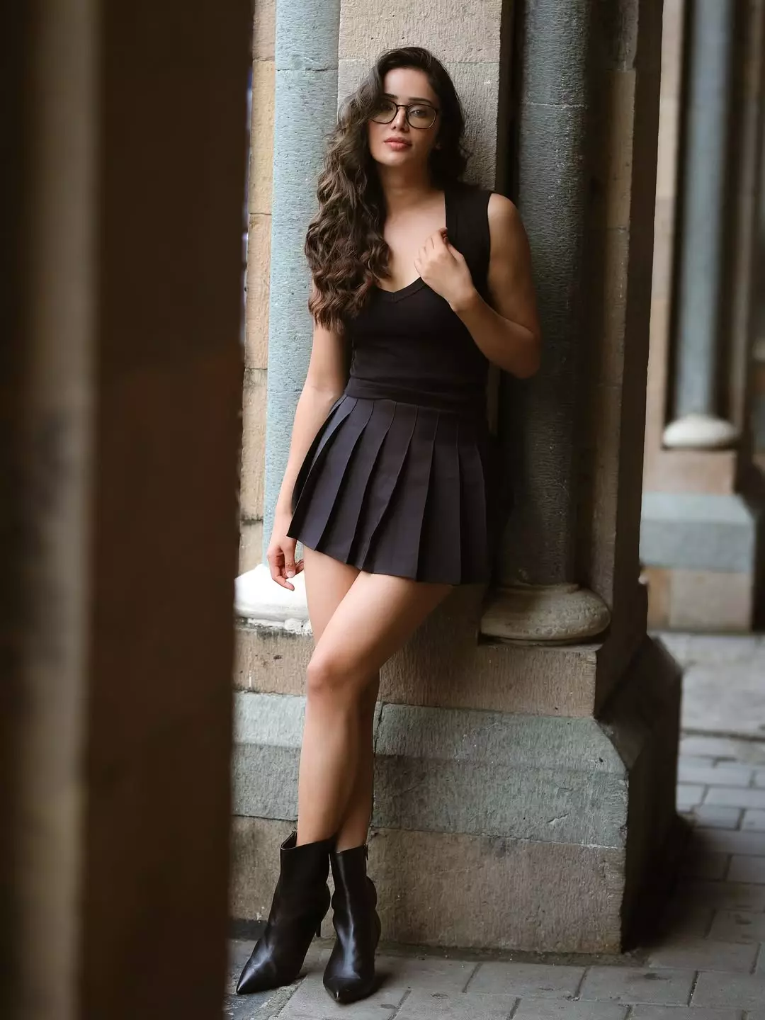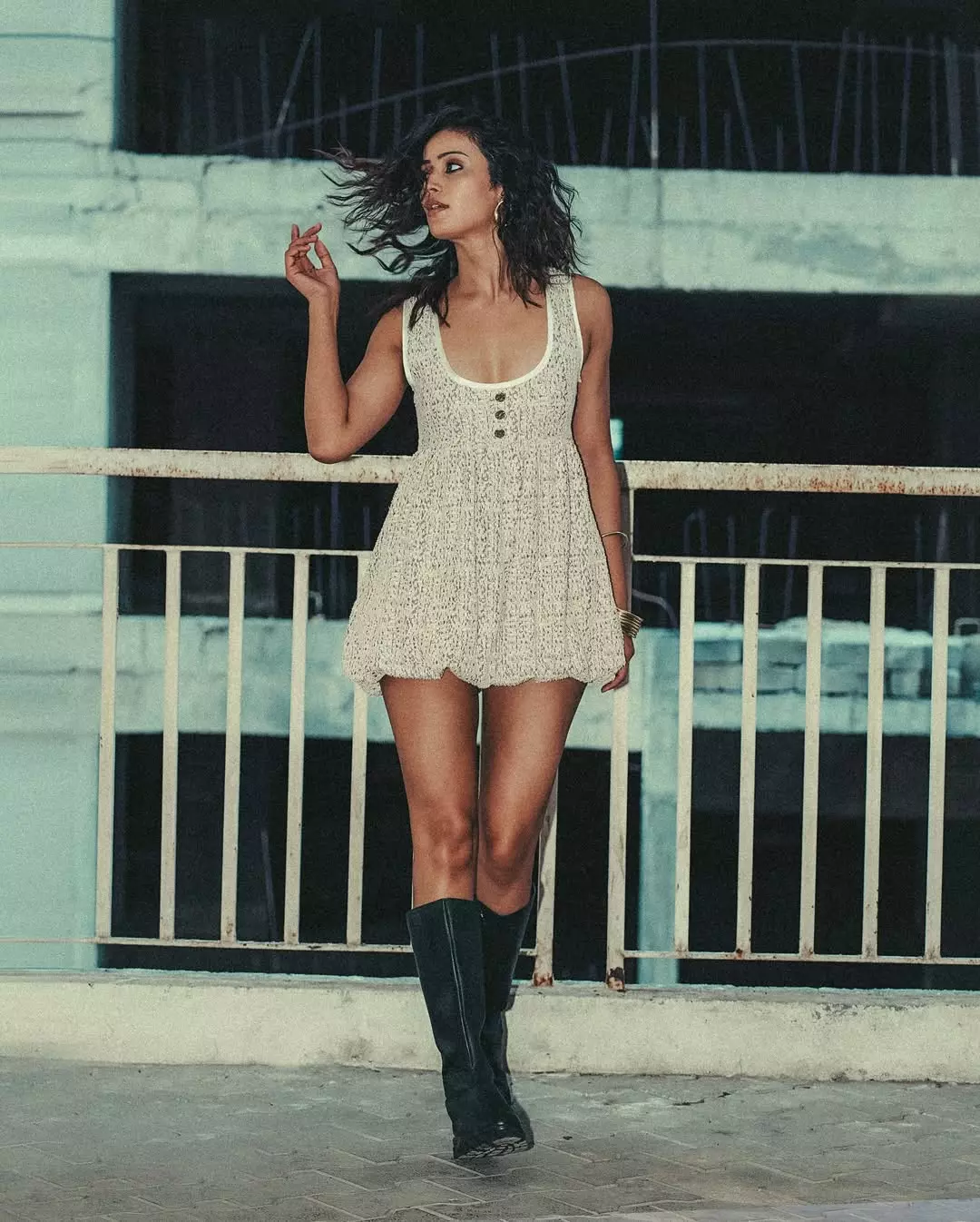 Anaira Gupta stuns in her latest photodump, serving fierce attitude and fashion-forward elegance. Dressed in a textured mini dress with a plunging neckline, Anaira blends modern femininity with an urban edge. The soft fabric contrasts perfectly with the rugged backdrop, making each shot a balance of grace and grit. Her tousled curls, metallic bangles, and smoldering gaze elevate the entire vibe raw, powerful, and effortlessly cool.