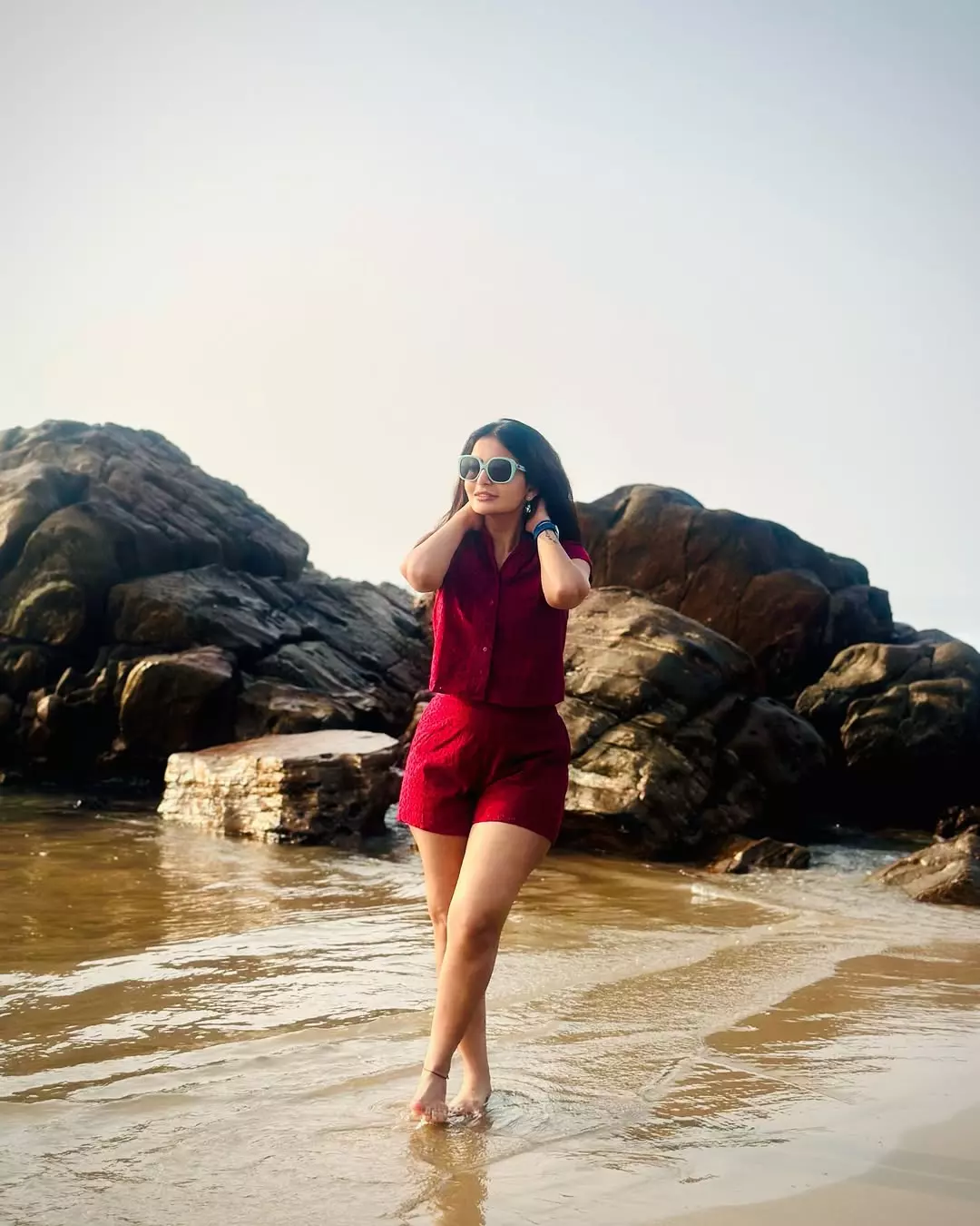 On social media, Ananya shares her fashion choices. Her Instagram account is filled with beautiful images of her in various lovely dresses. Ananya recently posted a picture on Instagram. In the photo, she wears a vibrant red dress. She stands by the beach, enjoying the waves. The sunlight highlights her smile. Her caption reads, "Sandy toes, sun kissed nose!" In these pics, she looks absolutely mesmerizing each frame a perfect portrayal of her natural beauty.