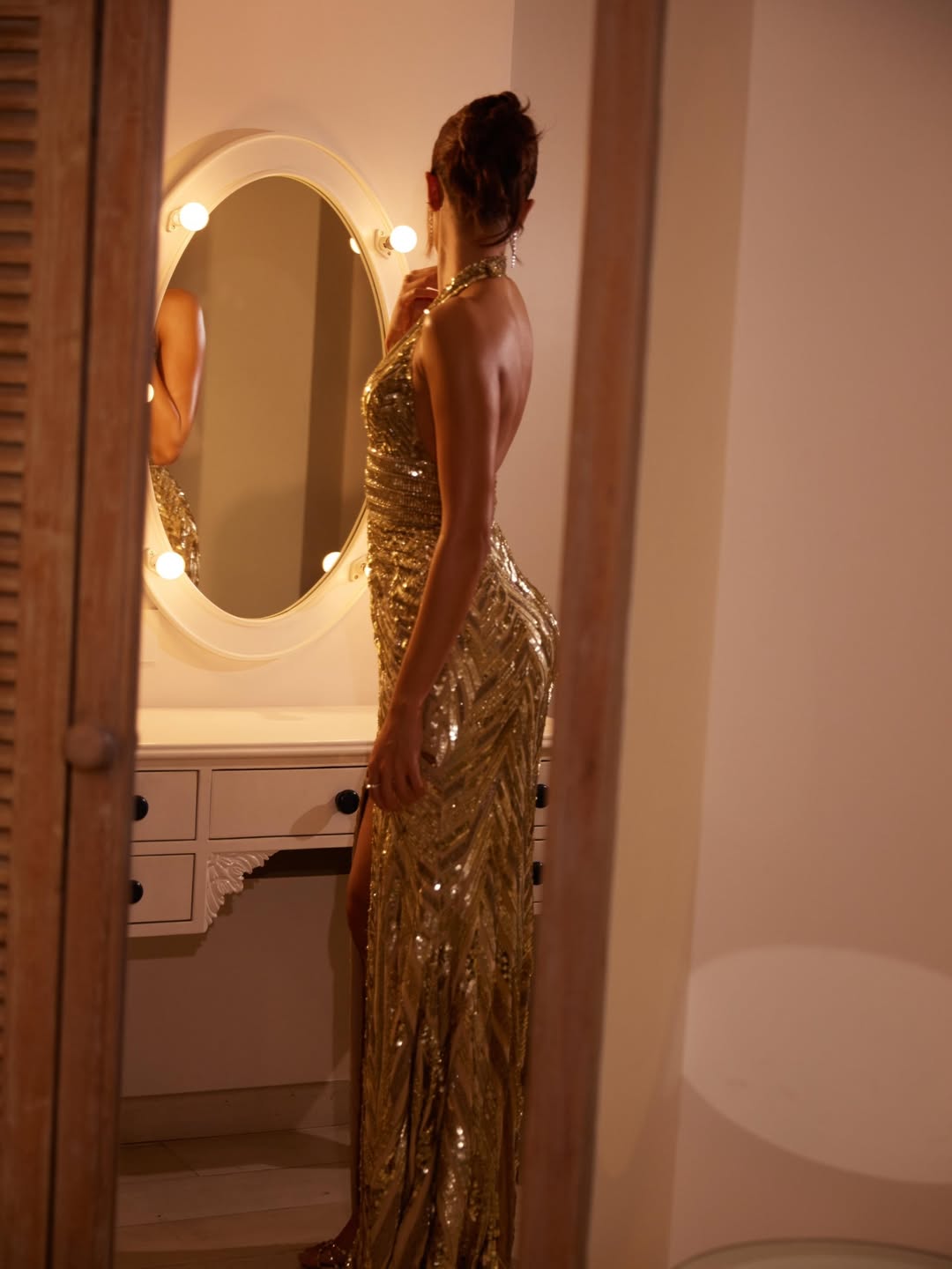In her latest glamorous outing, she turns heads in a shimmering gold sequined dress, carrying the look with effortless elegance and confidence.