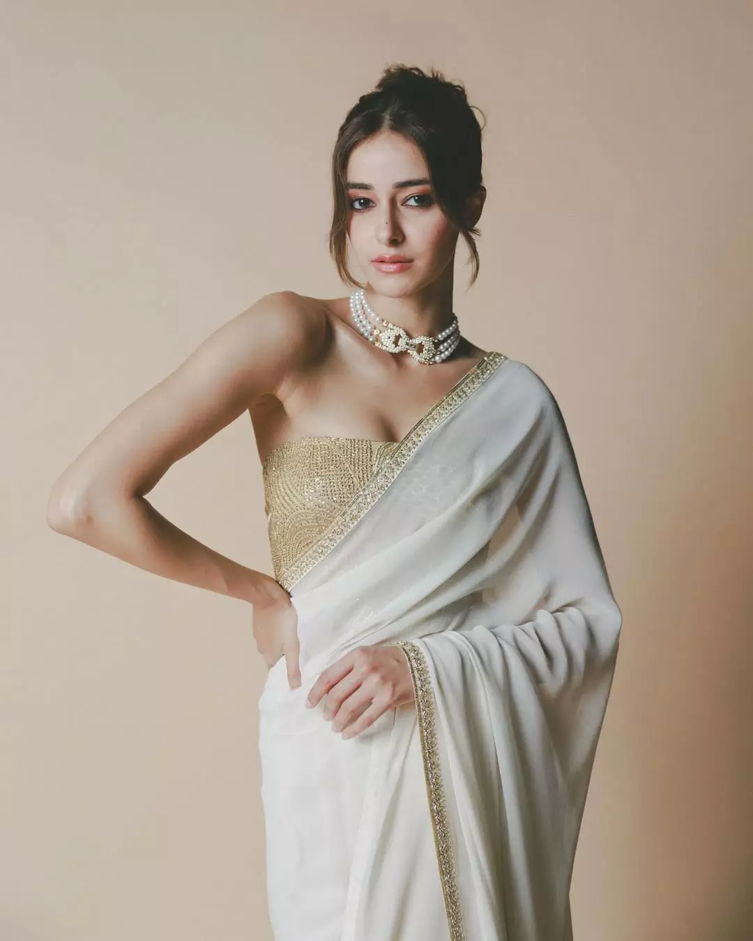 Bollywood actress Ananya Panday recently shared a photo on Instagram that caught everyone’s attention. Wearing a graceful off white saree paired with a stylish blouse and statement necklace, she looked simple yet classy. Holding a crescent moon-shaped clutch, Ananya captioned her post, “🌙 is out for @zeecineawards,” winning hearts instantly.