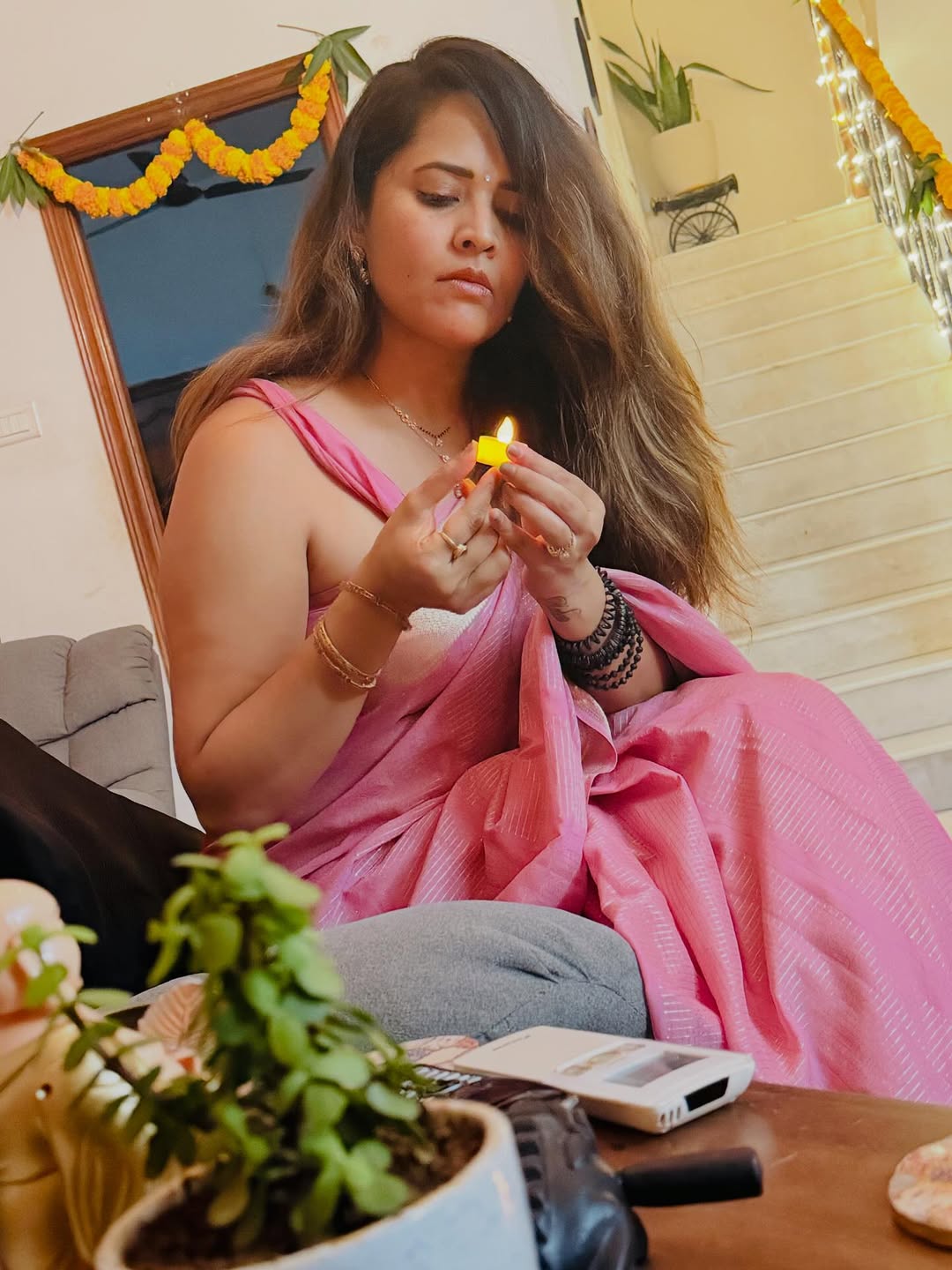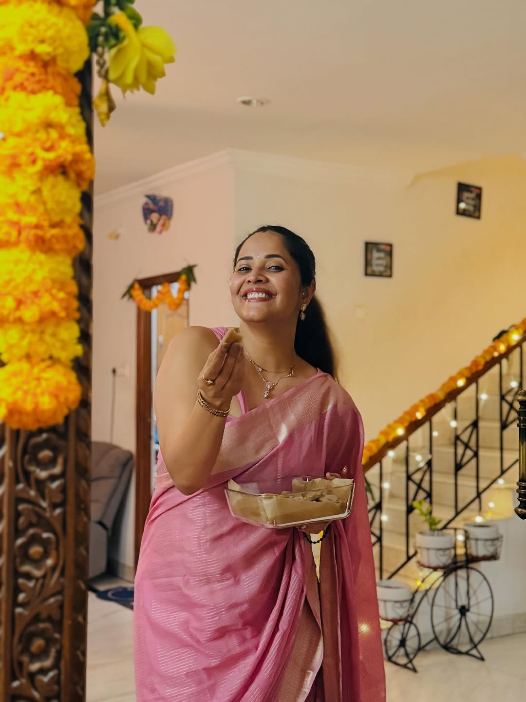 Her festive look reminds us all that Diwali is not just about grandeur, but about cherishing precious moments with those who matter most. As Anasuya shines in her elegant pink attire, she inspires a celebration filled with style, spirit, and heartfelt joy.
