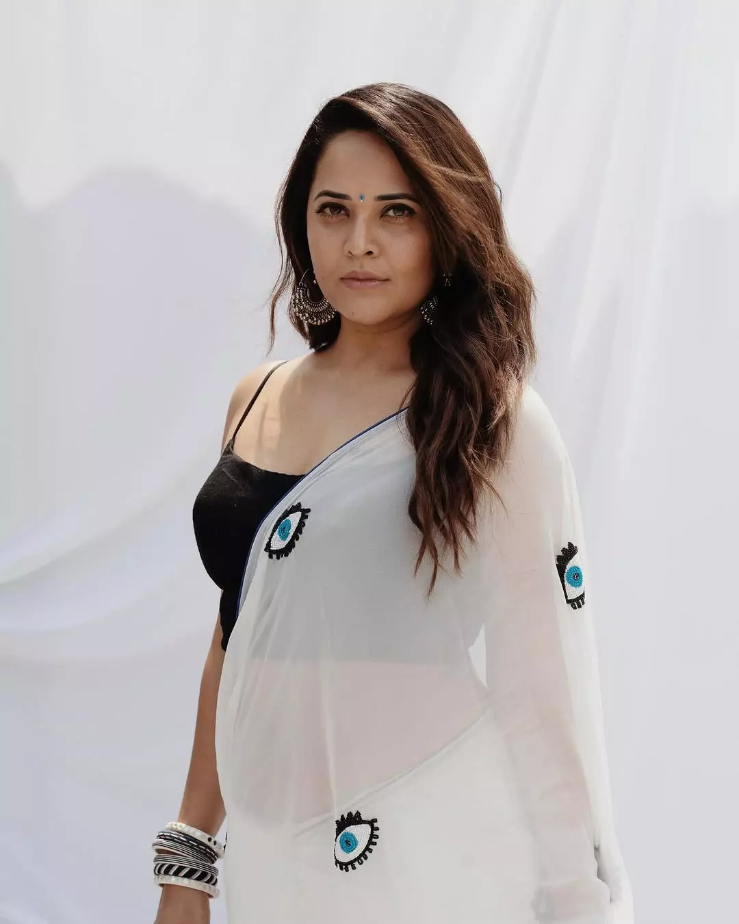 Anasuya wore an elegant blue dress designed by Studio Bustle and Seshanka Binesh, paired with jewellery from Jewel Journal by Kiara. Her makeup was done by @makeupbysiva, and @manoj_gangula captured the stunning picture.