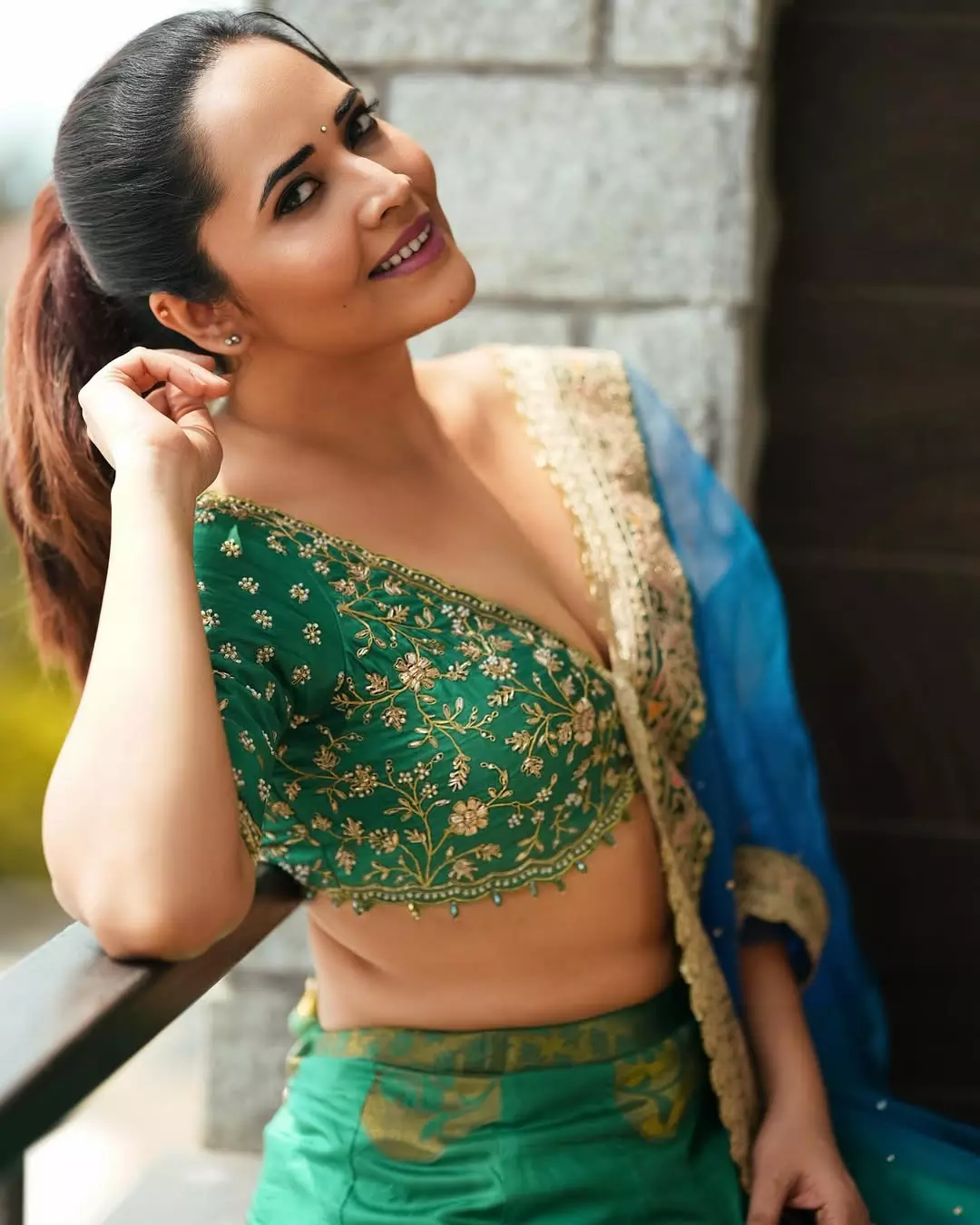 Recently, Anasuya has been winning hearts yet again with her unapologetic confidence and radiant beauty. Despite putting on a little weight, she continues to embrace herself with grace and boldness, setting an empowering example. On Diwali, she treated fans to a double delight — dazzling first in a lively Punjabi outfit in the morning, and later, setting the festive mood ablaze in a sleeveless blouse paired with a striking maroon saree.