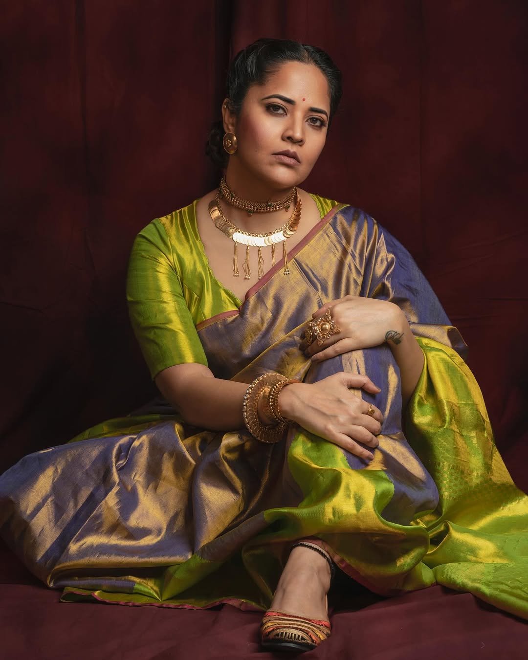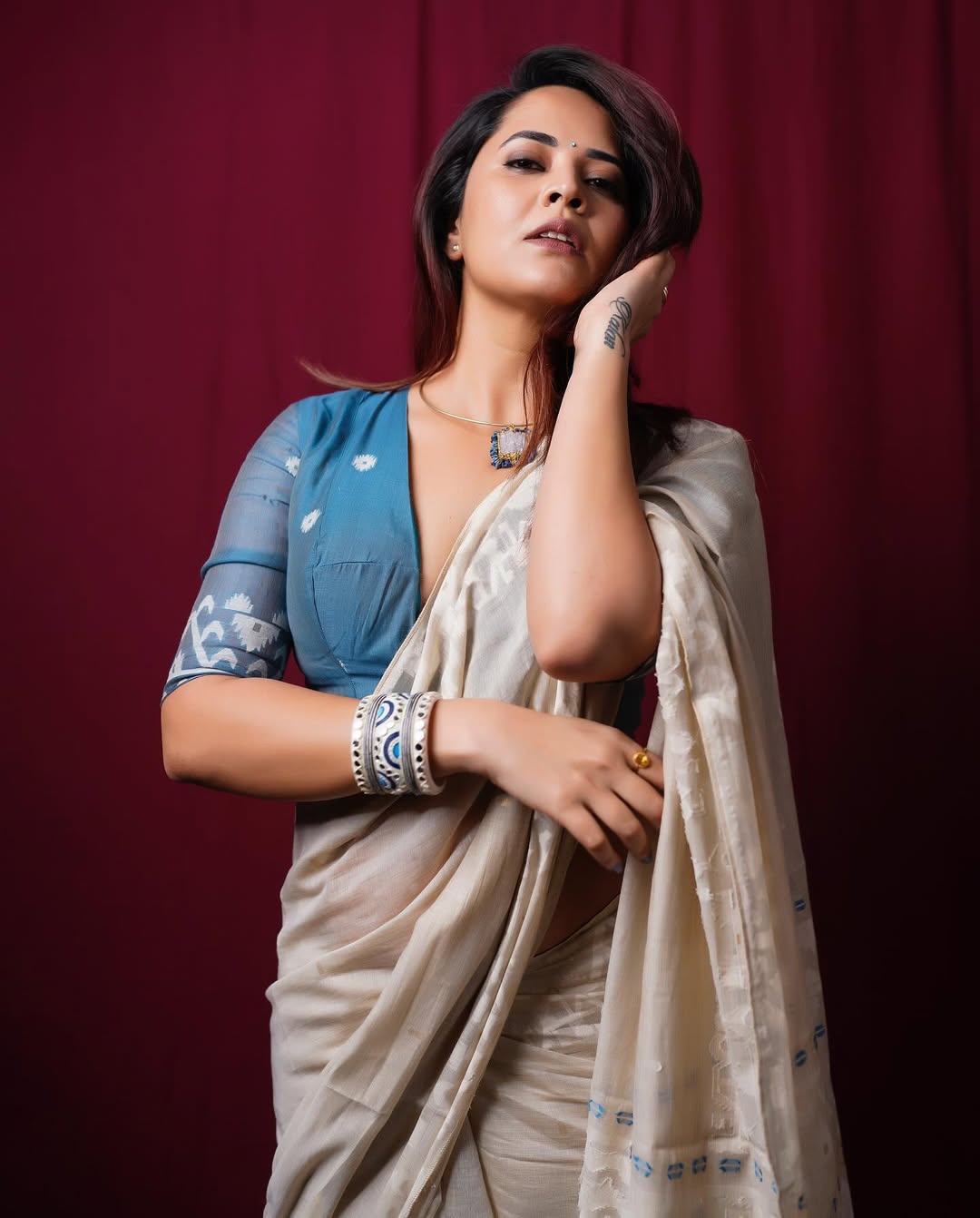 While many actresses often take brief pauses from social media, Anasuya Bharadwaj remains an ever-present delight for her fans. Known for her vibrant personality and distinctive fashion sense, she keeps her followers constantly captivated with stunning photoshoots — be it in elegant sarees, chic contemporary outfits, or traditional ensembles that reflect her unique charm.