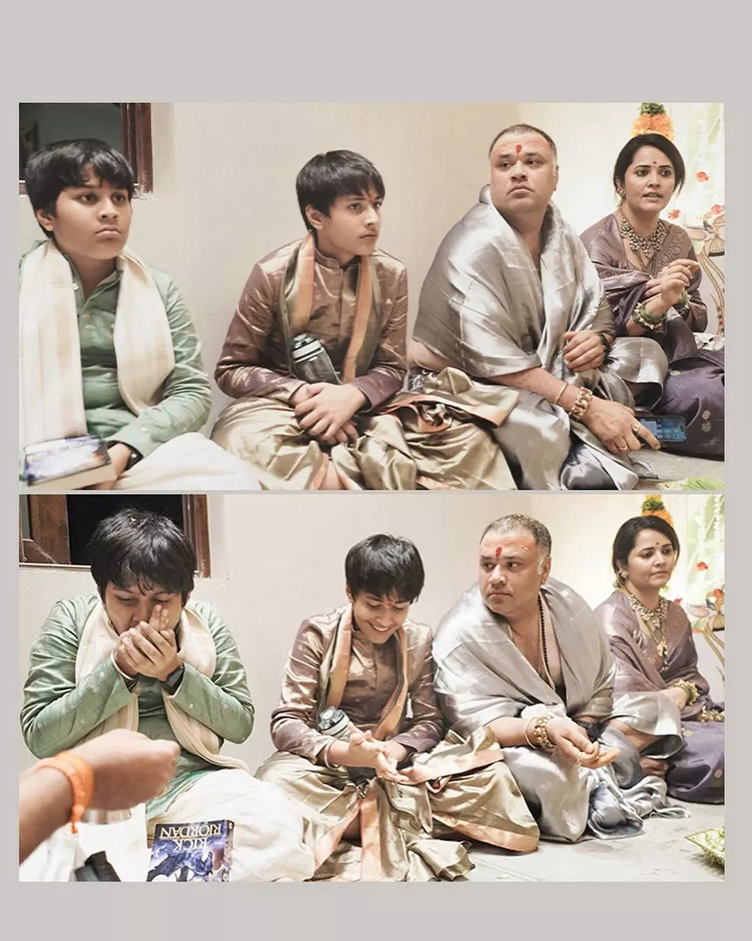 Alongside the rituals, which included pujas, Satyanarayana Vratam, and Rudrabhishekam, she shared a personal moment that caught attention. They had planned to name the house ‘Sanjeevani’. But her Guru, after a pause, suggested adding ‘Shri Rama’ to it. She agreed without hesitation. Then, during the homam, her Guru showed her his phone and said, “Anasuya.. Anjaneya has come.” That moment stayed with her.