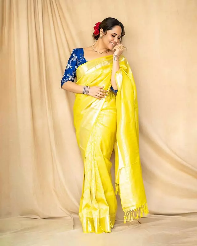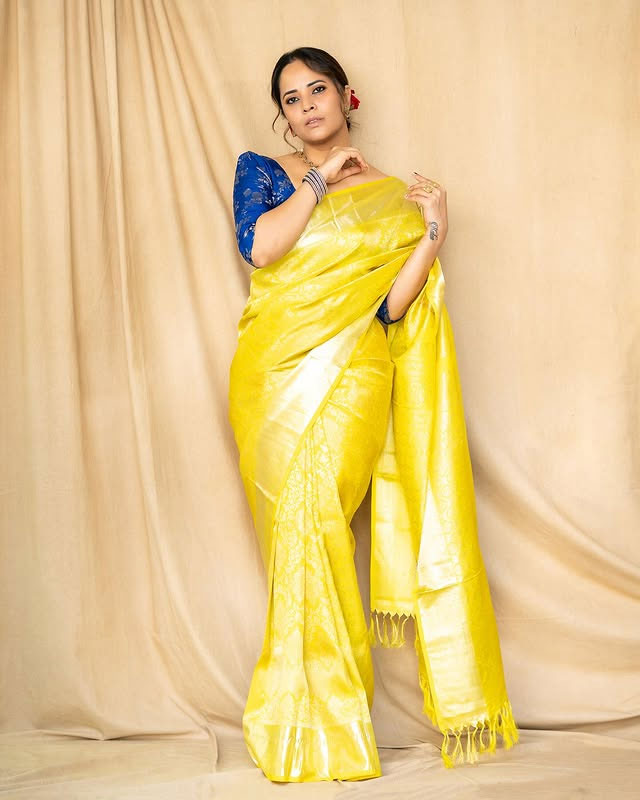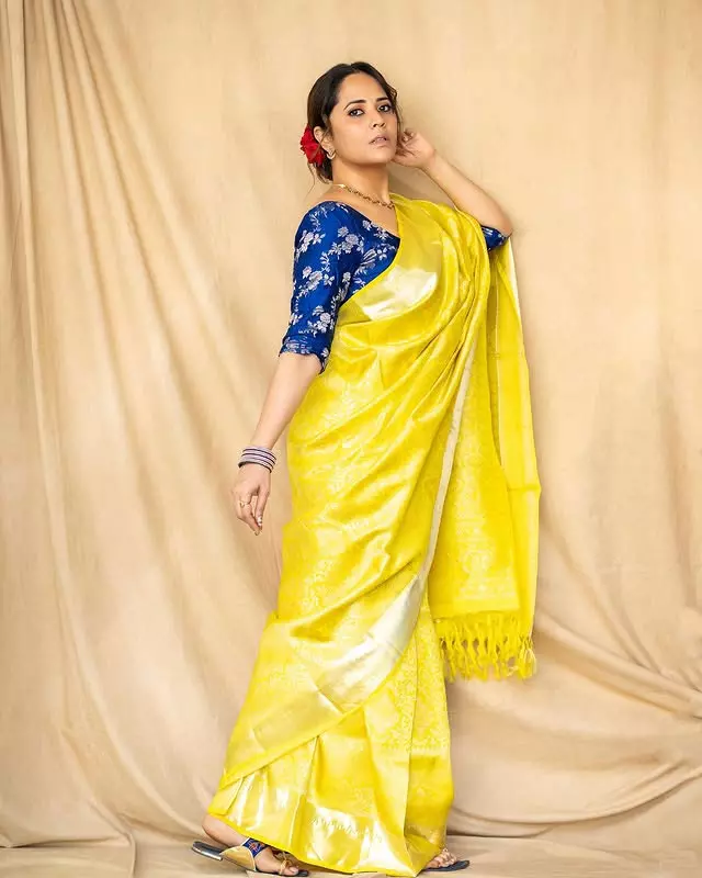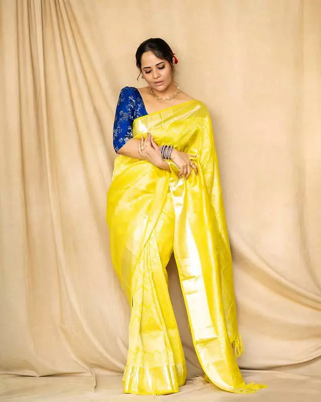 Meanwhile Anasuya’s latest Instagram post reflects her love for tradition. She wears a bright yellow saree with elegant patterns.