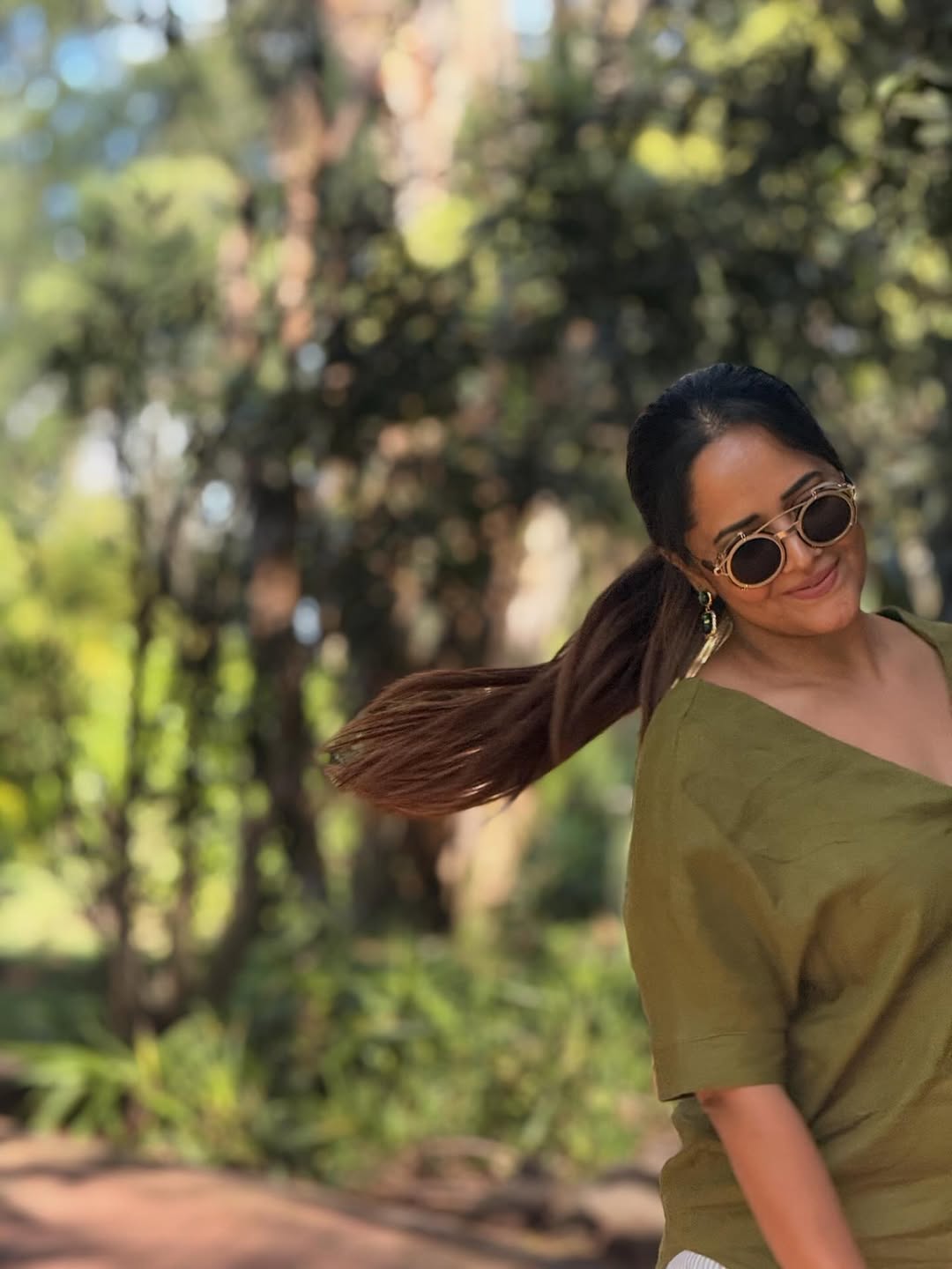Whether in casual ensembles or styled photoshoots, Anasuya continues to inspire with her effortless ability to merge fashion with the environment. These latest clicks celebrate simplicity, grace, and the timeless beauty of embracing nature.