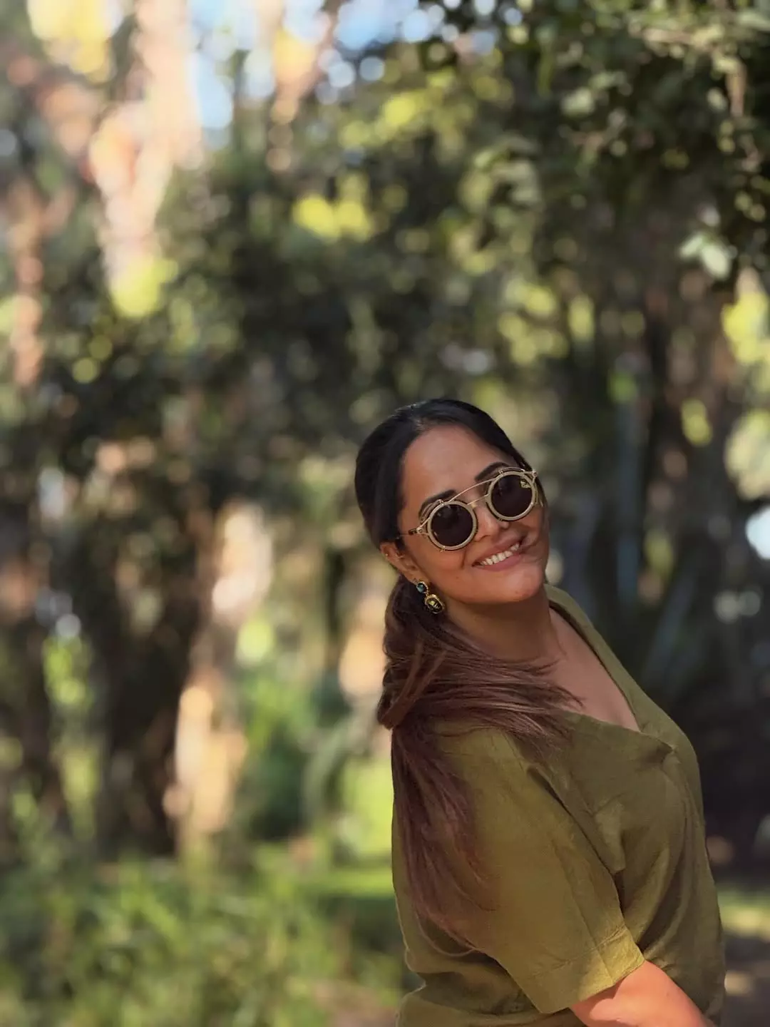Anasuya Bharadwaj looks effortlessly radiant in her latest photoshoot, surrounded by the calming tones of nature. Draped in serene shades of green, she harmonizes beautifully with the tranquil backdrop, creating visuals that are both refreshing and soothing. Her relaxed poses and genuine expressions convey a seamless blend of elegance and the peaceful beauty of the outdoors.