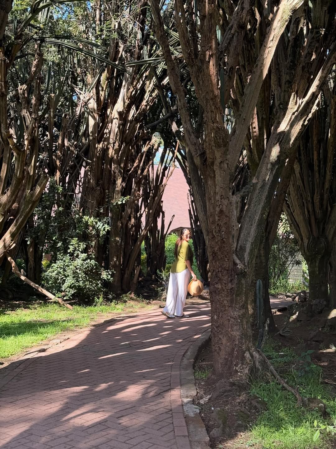 Her relaxed poses and genuine expressions convey a seamless blend of elegance and the peaceful beauty of the outdoors.