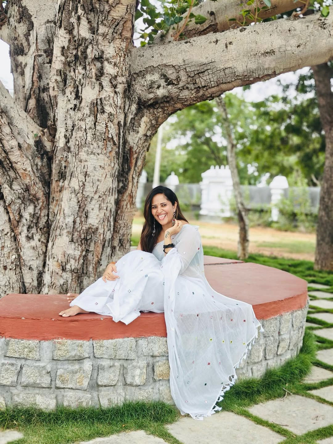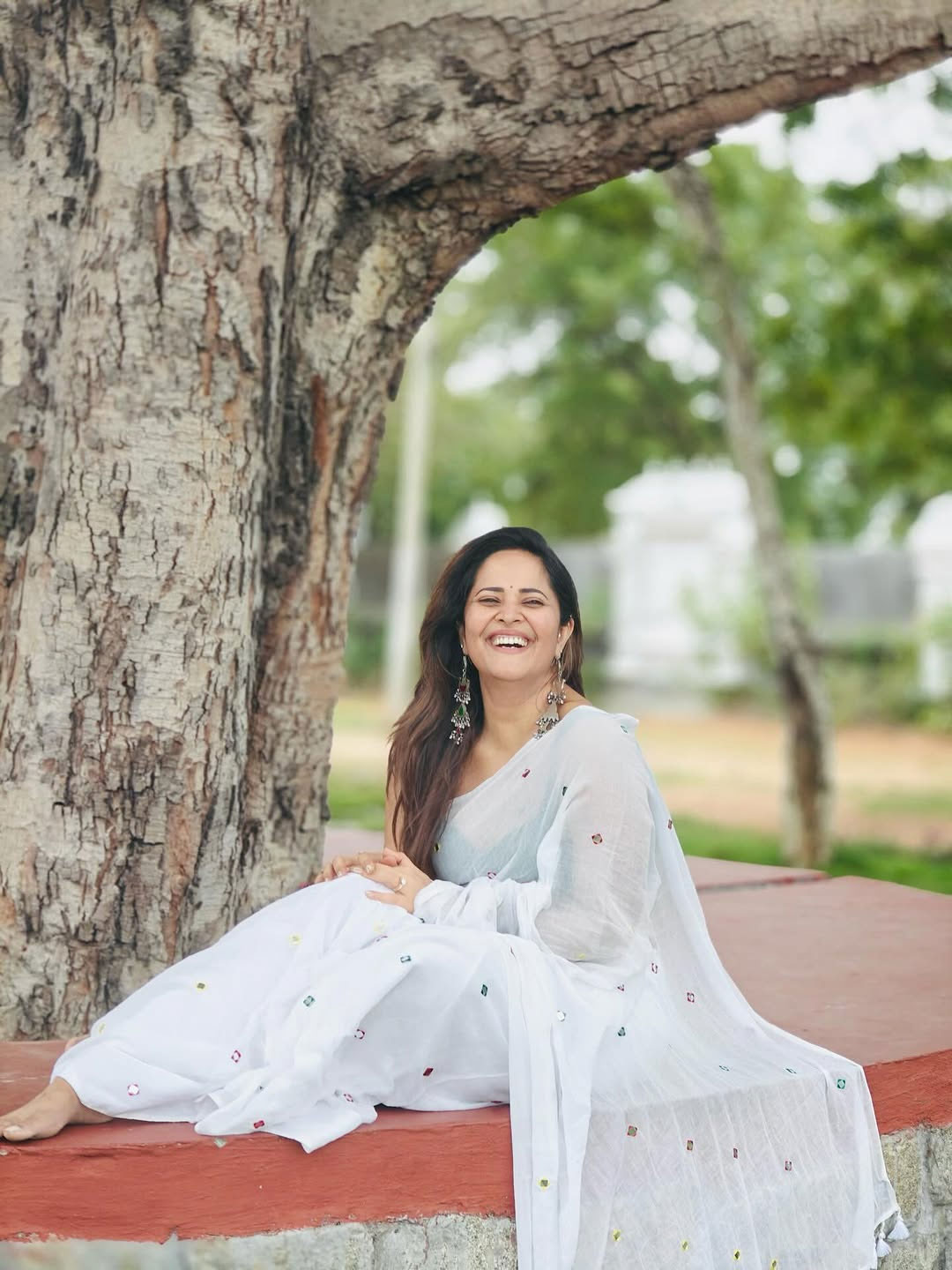 By: Tupaki Desk | 24 Jun 2025 9:58 PM ISTAnasuya Bharadwaj shared a peaceful moment on Instagram that instantly captured hearts. In the photo, she is seen sitting under a tree, wrapped in a simple white saree dotted with colorful patterns. Her laughter is pure and joyful, adding warmth to the setting. The serene green backdrop adds to the calm vibe giving the image poetic charm. Along with the picture, she wrote, “A day that felt like a poem..💭🤍🧿” and added hashtags like #MyTribe and #MyKindaVibe. She also mentioned names and tags such as “@sreemukhi.mekala ❤️ @mekalachandramukhi ❤️ @ramyasspace ❤️ #Jai 🐄 #Mangala #Shyamudu #RajaSimha #babies 🍼🍼🍼🍼.”