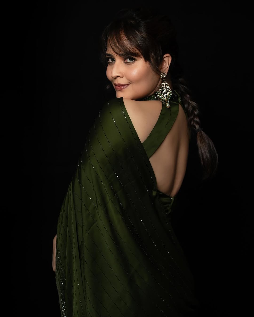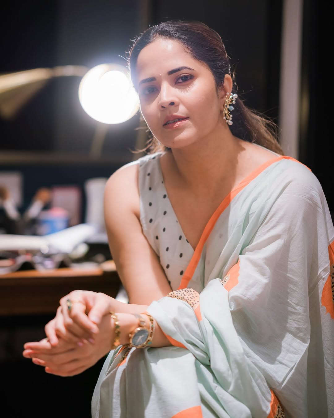 In a recent Instagram post, actress and television personality Anasuya Bharadwaj portrayed an elegant traditional look.