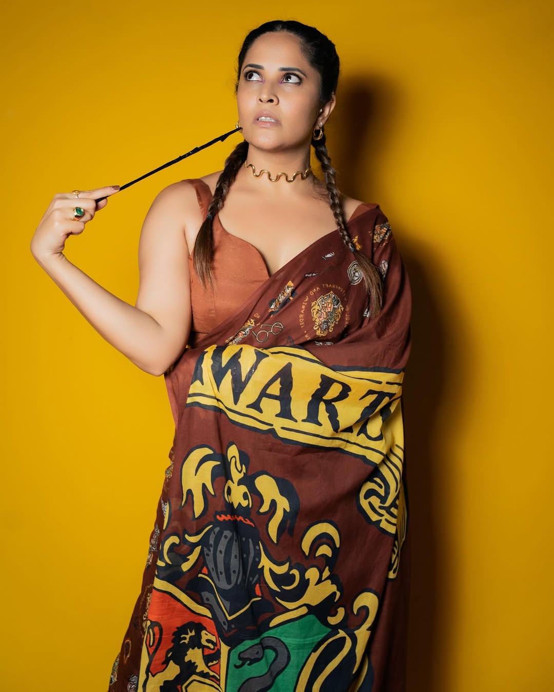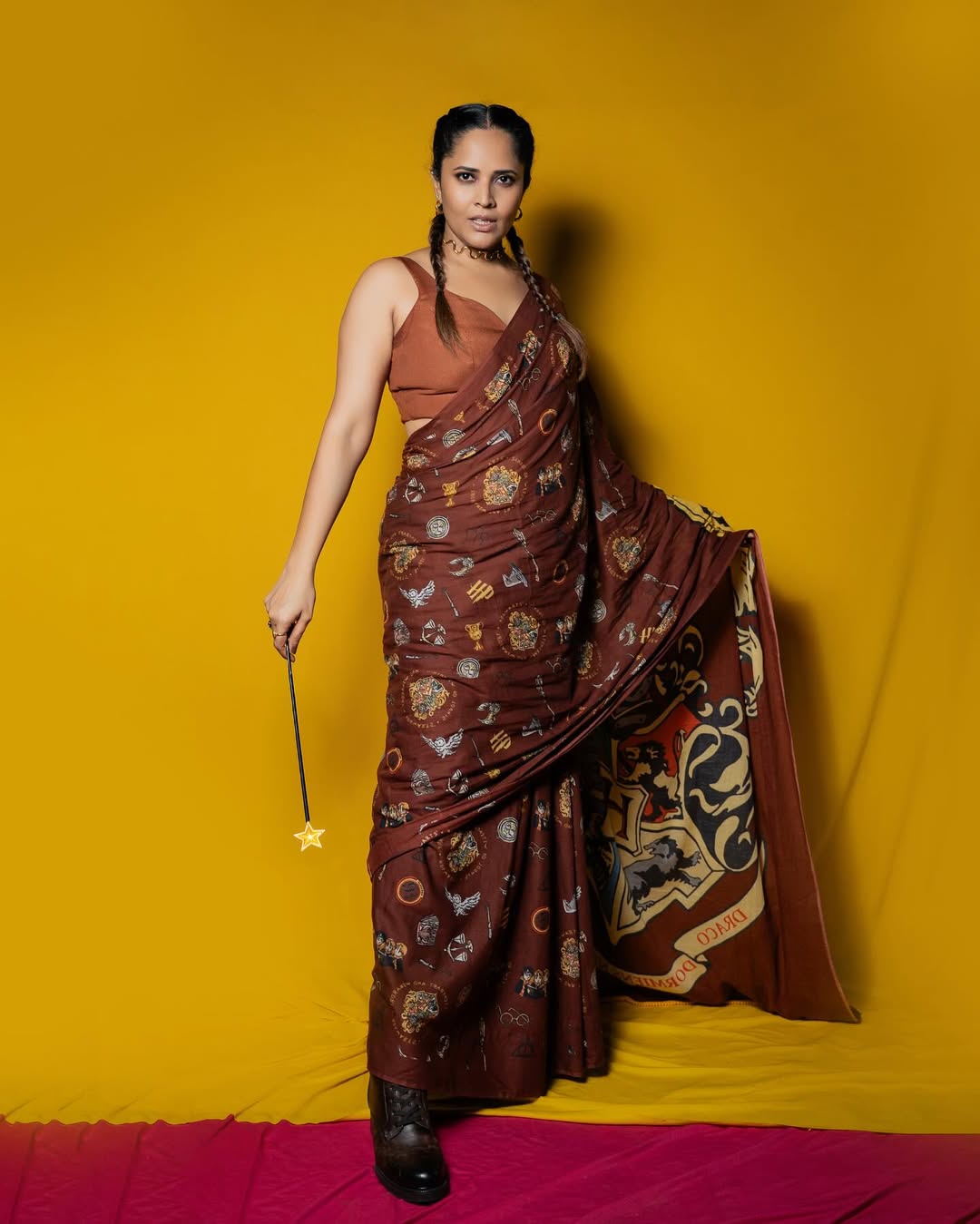 Anasuya Gets Magical Channeling Her Inner Potterhead in a Hogwarts-Inspired Saree