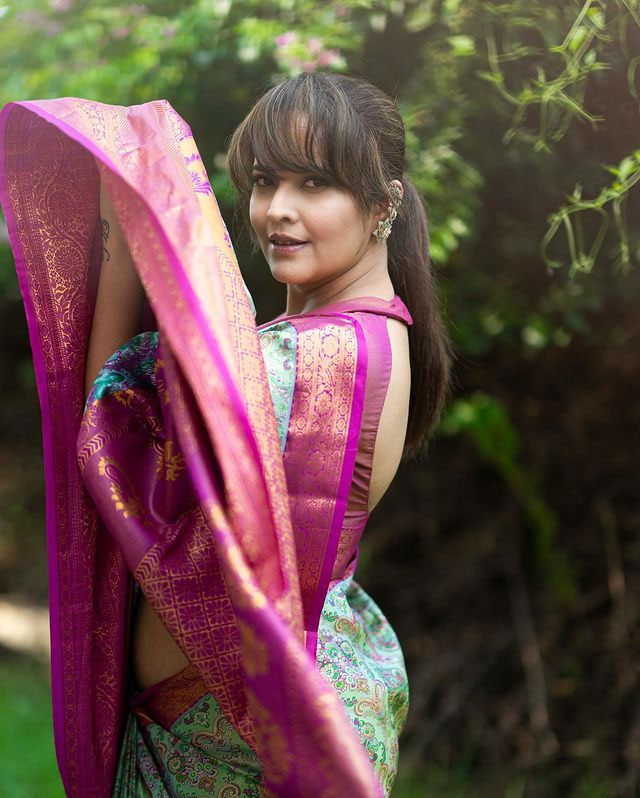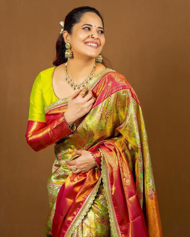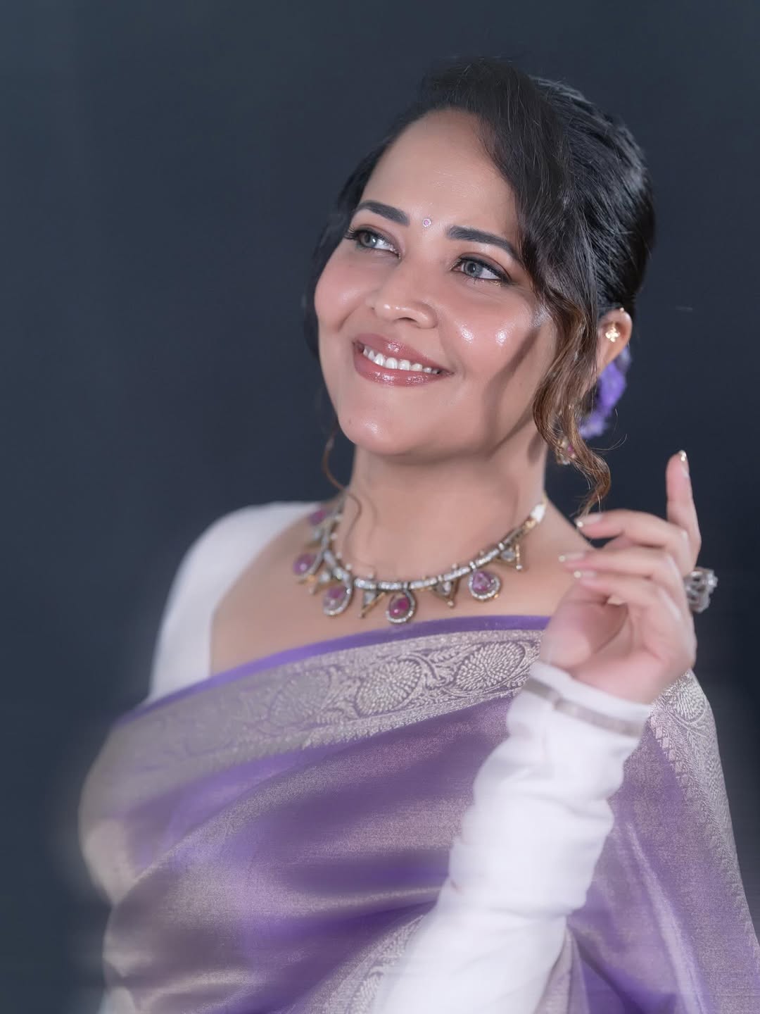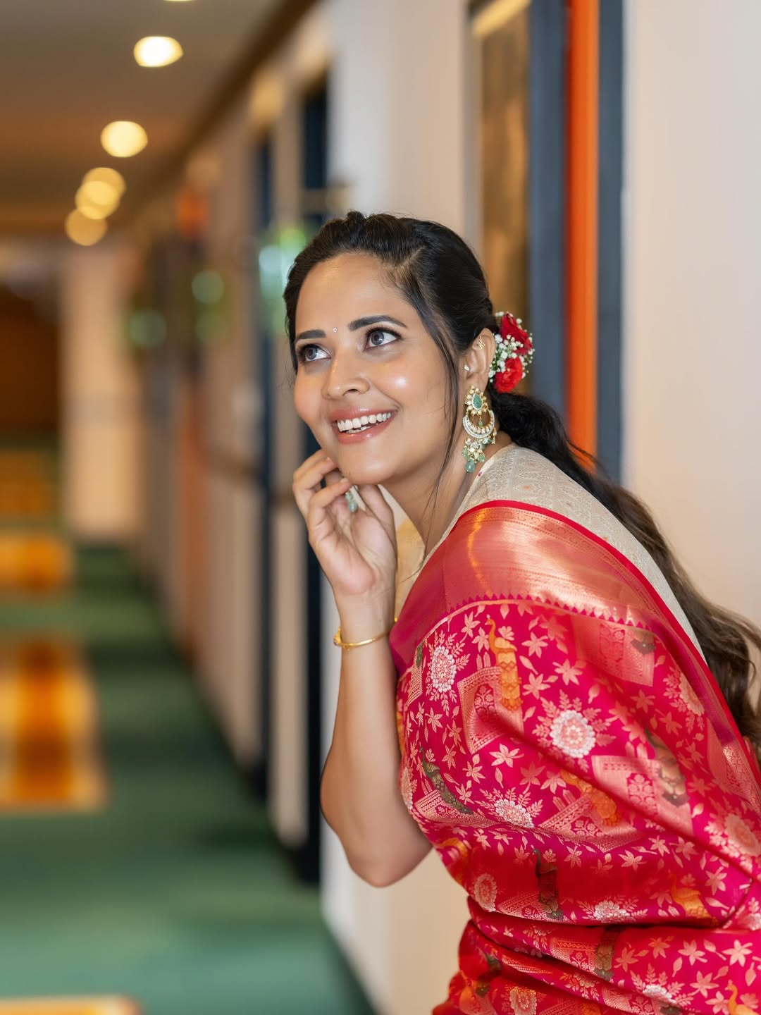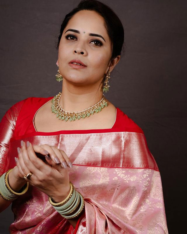 In the caption, Anasuya thanked the people of Parvatipuram and mentioned how beautiful they are. She also credited her team for the appearance. Styling was done by rishi chowdary. The saree was from southindiashopping. Jewellery came from southindia jewellers. Makeup was handled by makeupbyramakrishna. Hair styling was done by Thimmappa. Photography was by takeokstudio.in. Celebrity management was taken care of by kalyansunkara, with assistance from kondeti karthik. She ended the post by wishing everyone a happy Sunday.