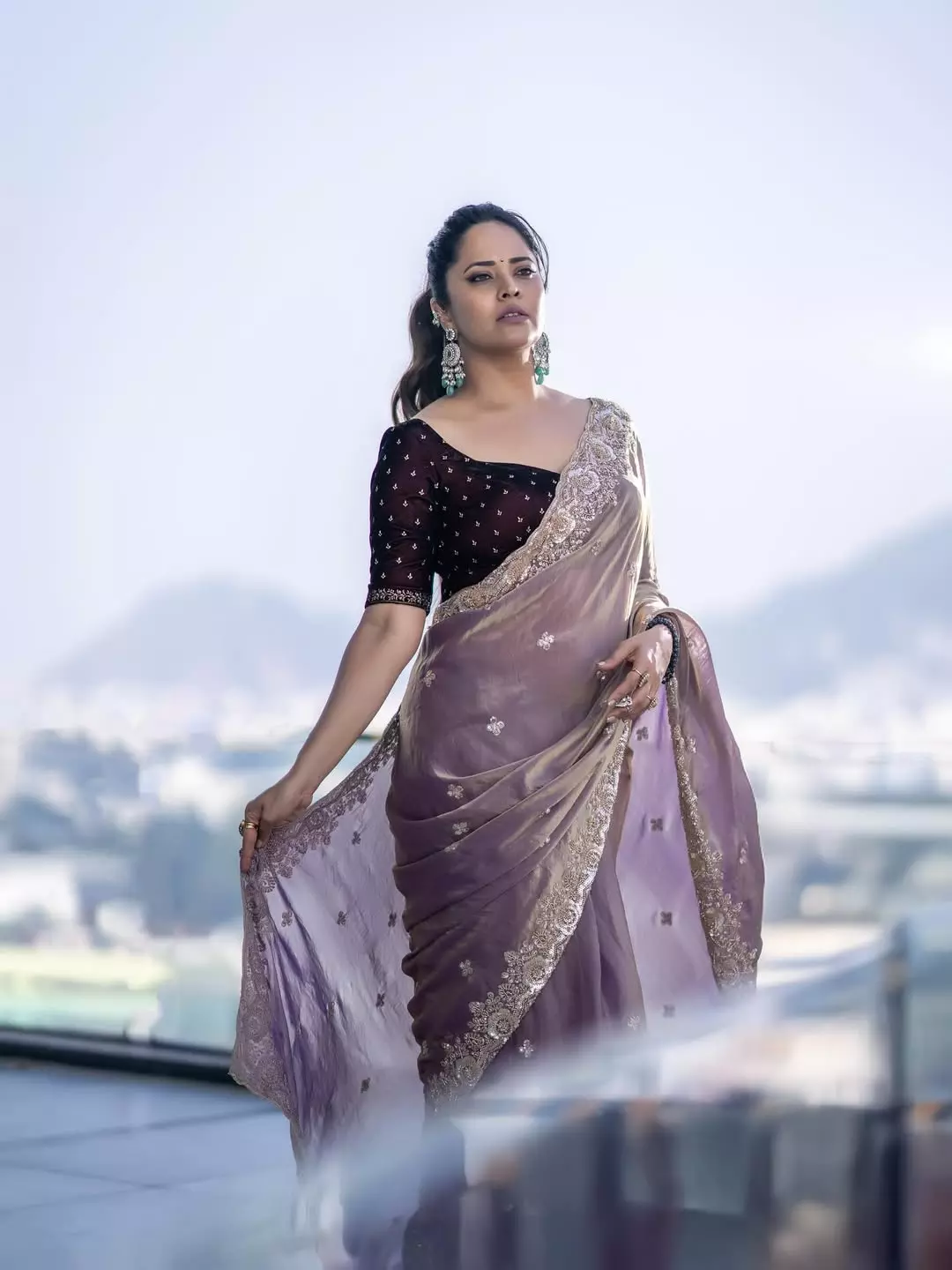 In the caption, Anasuya credited several people who worked behind the scenes. The outfit was designed by Vajra Couture, while the jewellery was from Queens Silver Jewellery. Her makeup was done by Ramakrishna, and hair styling was handled by Nagukasu. The photographs were clicked by the team from The Valmiki Ramu Photography. Celebrity management support came from Kalyan Sunkara and Umedia Entertainments, with assistance from Kondeti Karthik. By acknowledging her entire team, Anasuya showed gratitude and professionalism.