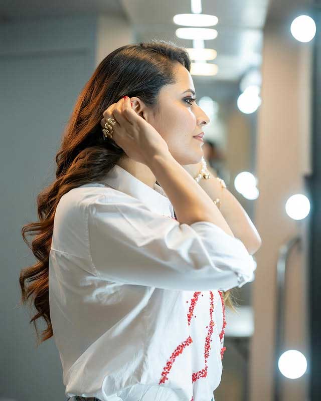 She shared this look for her show #KiraackBoysAndKhiladiGirls2 (KBKG2), which airs on Star Maa every Saturday and Sunday at 9 PM. The caption also included credits to her styling and photography team: